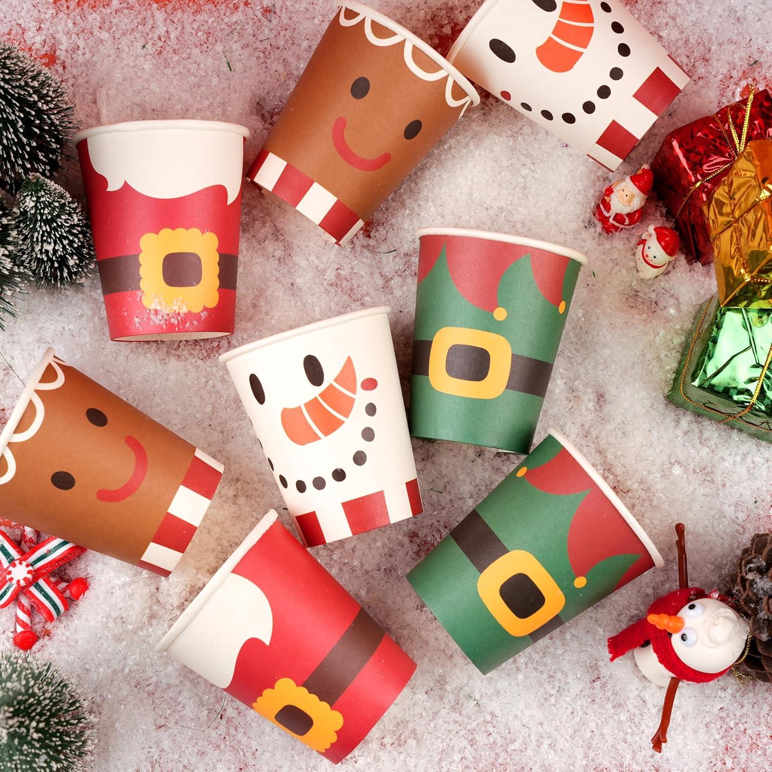Christmas Party Cups Pack: Our 9 oz Christmas Paper Drink Cup Set includes 48 pcs disposable paper cups in 4 various Xmas designs. Making it a value for Christmas party supplies, allowing everyone to enjoy their favorite beverages.