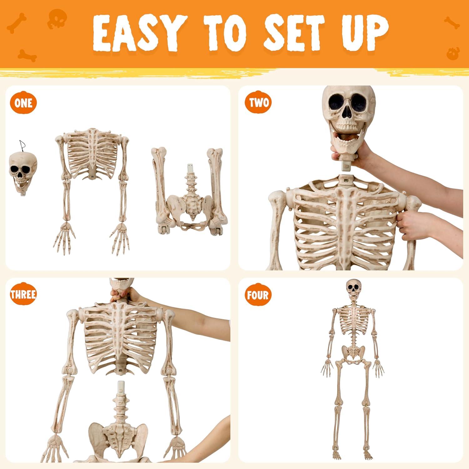 Posable Joints for Creative Display. Our Halloween life size skeleton poseable joints features fully posable joints, Halloween skeleton decor will stay in place once positioned. Skeletons bones Halloween decorations will be a big hit at your Halloween party, allowing you to create dynamic and spooky poses for a truly authentic Halloween experience.