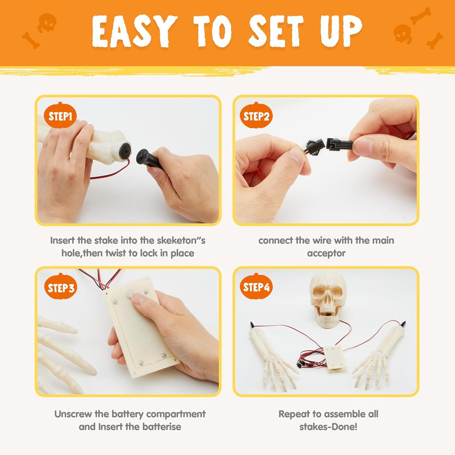 Easy to Install & Durable: Crafted from weather-resistant, high-quality plastic, can longevity for reuse. No tools required! Simply combine the stakes with skull, arms and legs, push the attached stakes into soft soil or grass. The lightweight design ensures hassle-free placement, even for last-minute haunters.