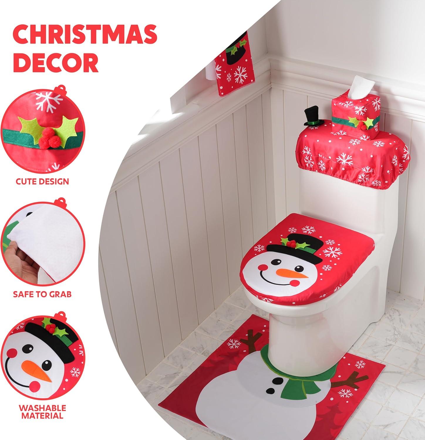 Ideal Decor. Those Christmas Decoration Bathroom Sets are perfect for Xmas Home Decoration, Home and House Christmas Event Party Favor Supplies, Holiday Season, Funny Toilet Seat Cover, Bathroom Christmas Decorations and more.