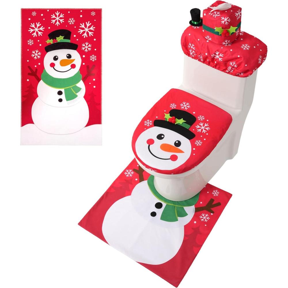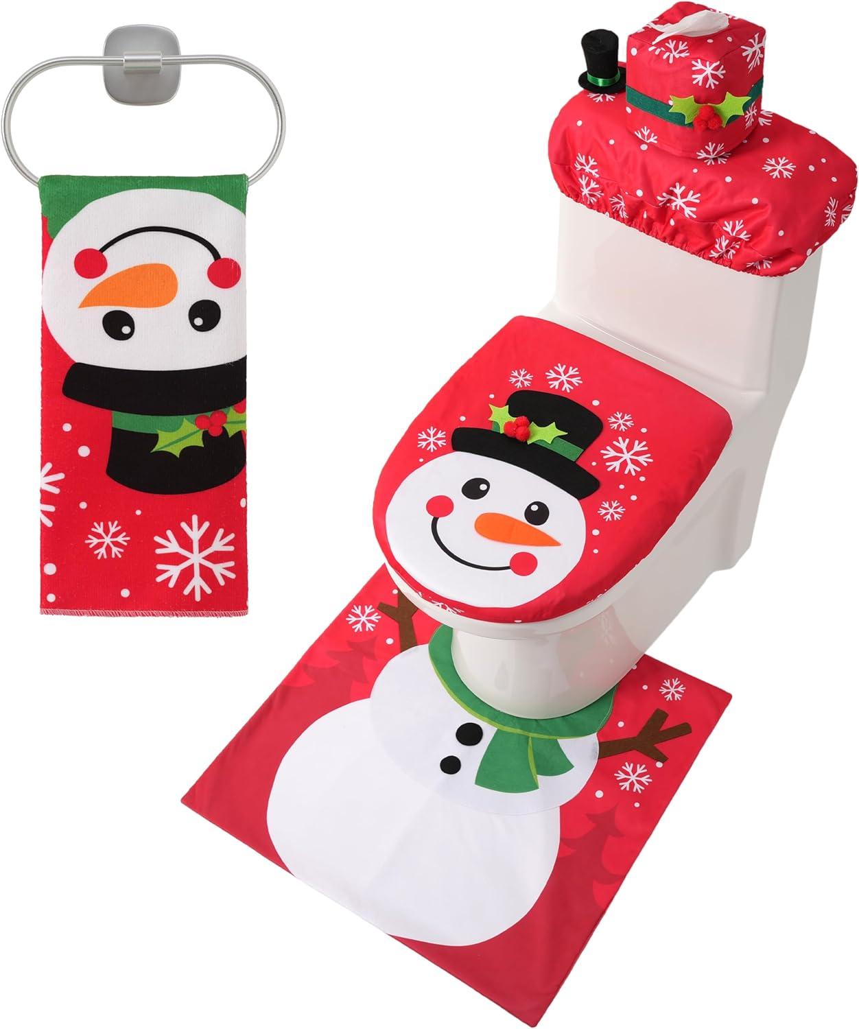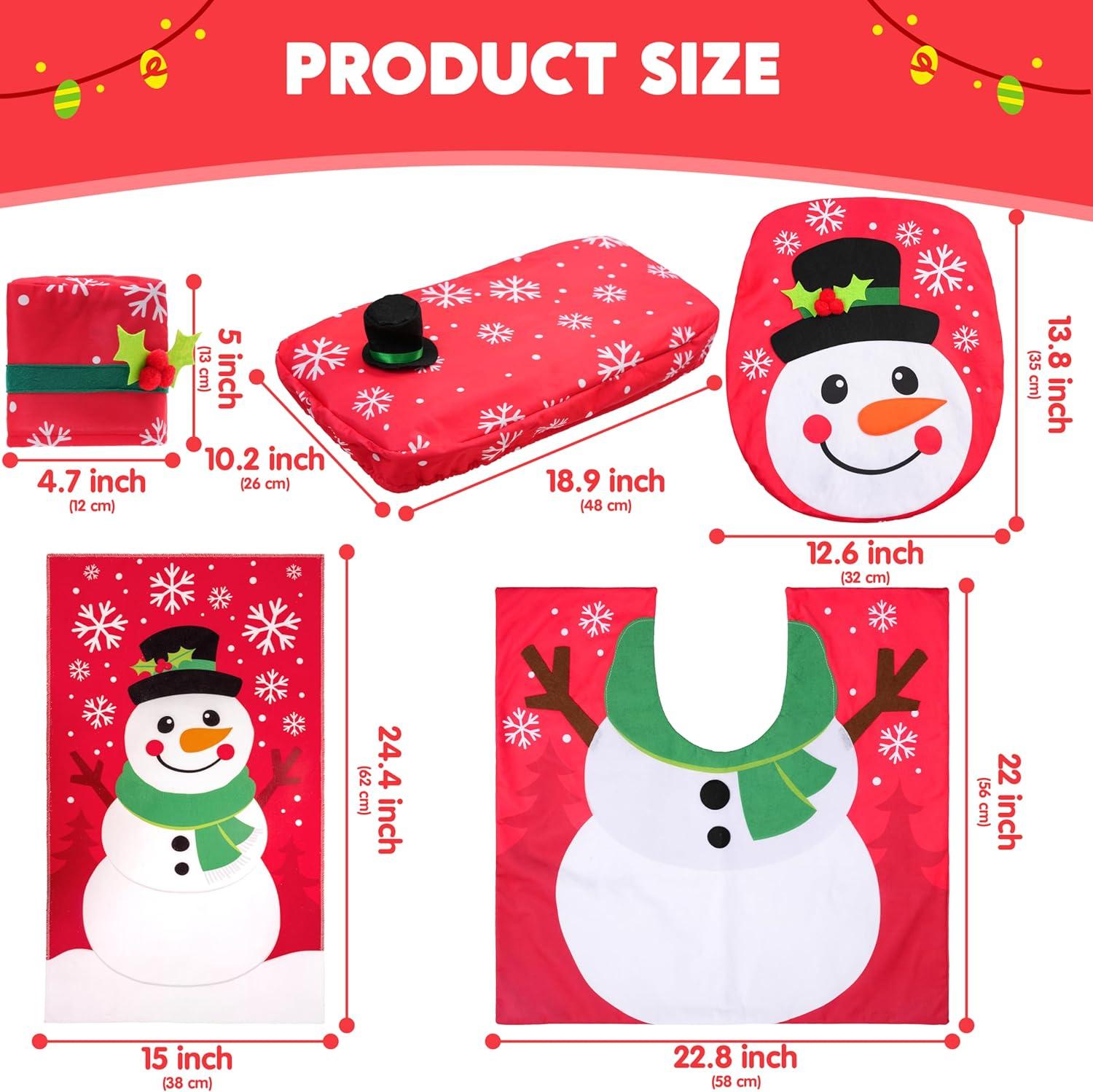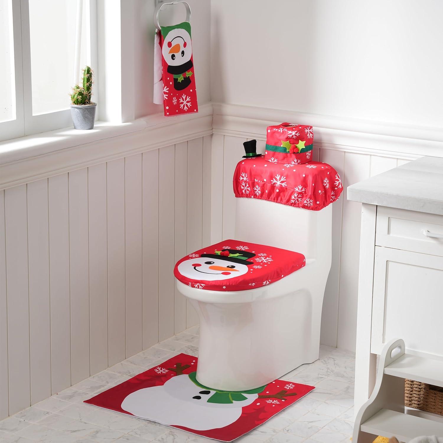 Unique Design. Our Santa Theme Bathroom Decoration Set includes Snowman design. Made of soft and high-quality craftsmanship material ensures this toilet cover set for the bathroom can be used year after year .