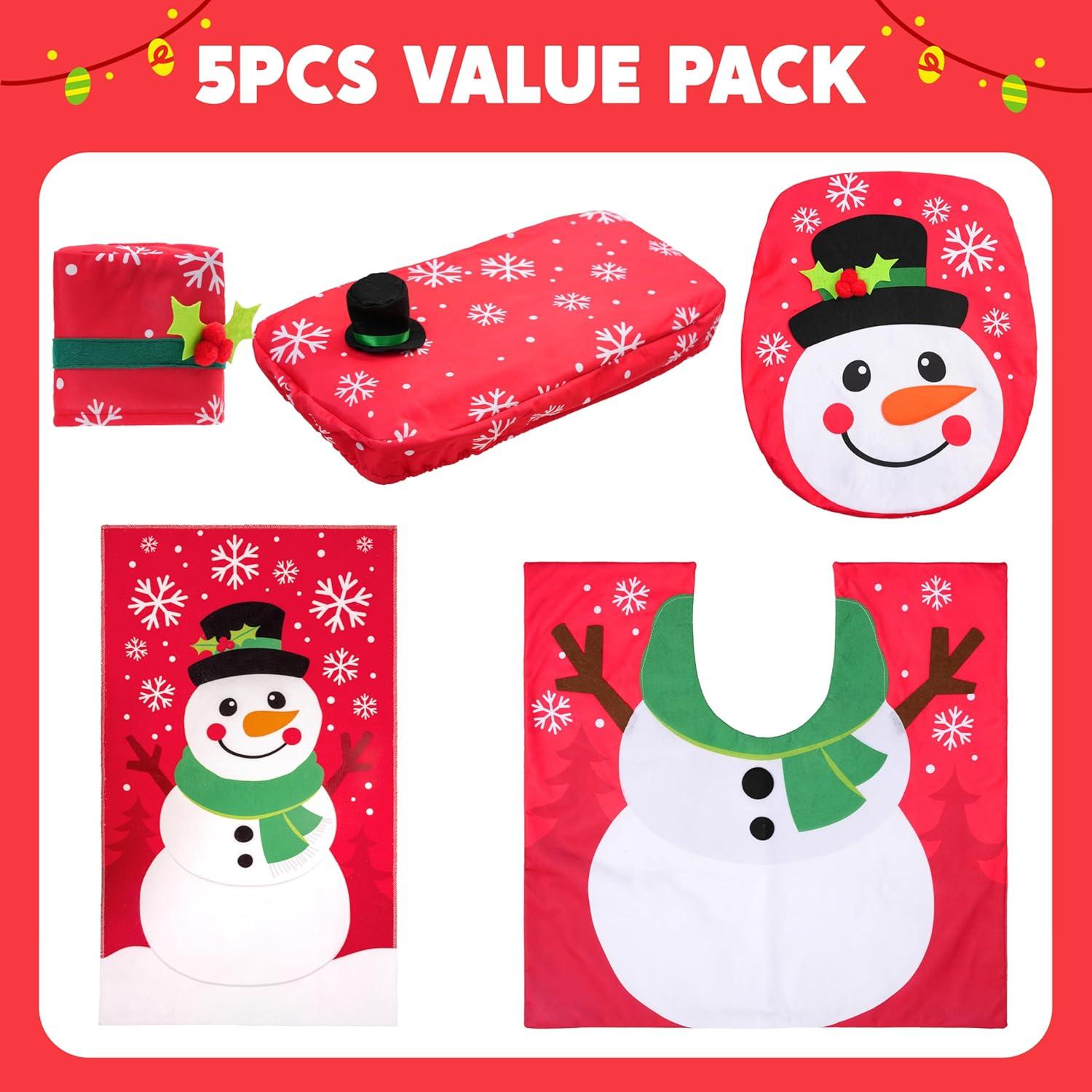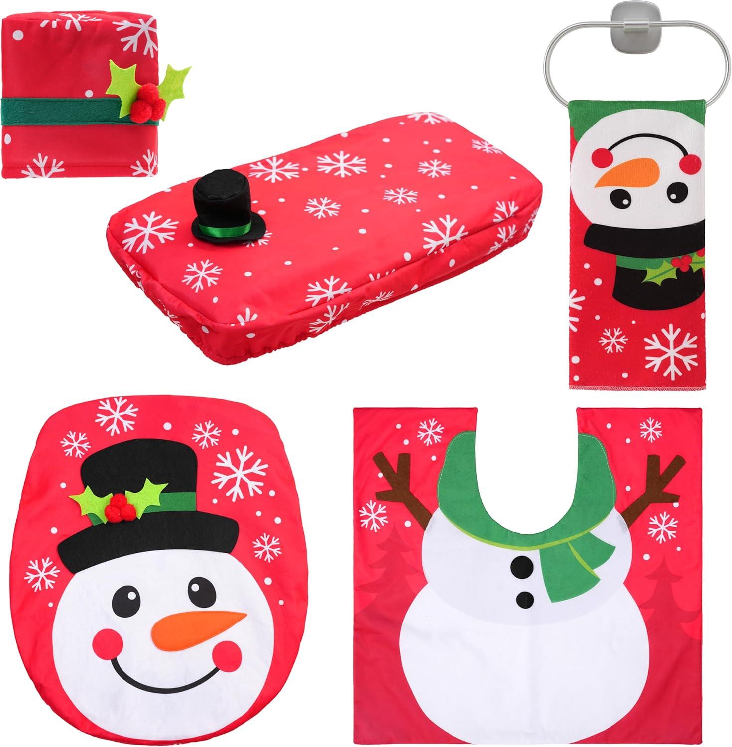 JOYIN 5 Pieces Christmas Snowman Bathroom Decoration Set with Toilet Seat Cover, Rugs, Tank Cover, Toilet Paper Box Cover and Santa Towel, Xmas Party Accessories for Indoor Décor, Party Favors
