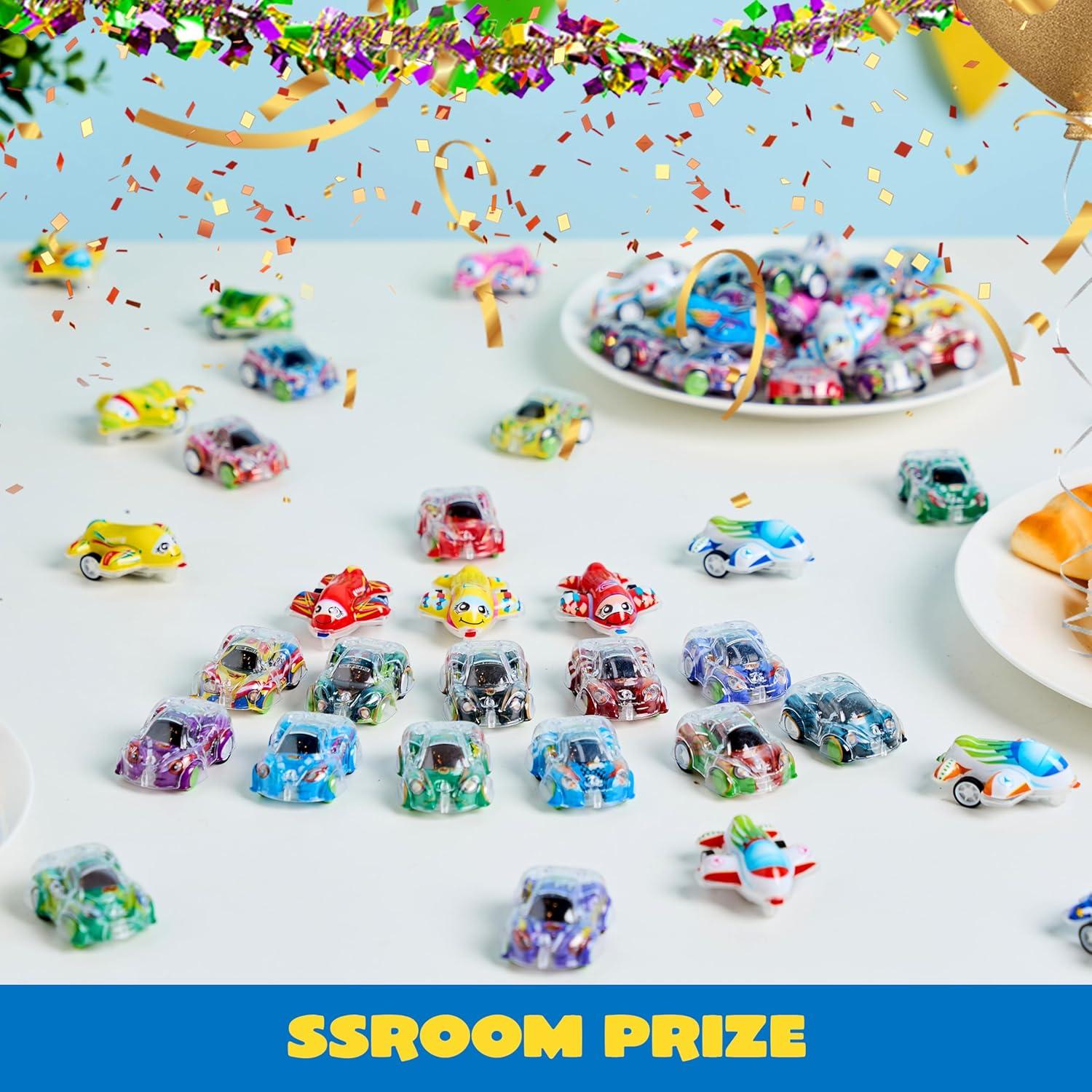 AWESOME PARTY FAVORS: This Mini Pull Back Cars Set has 50 Pcs: 25 cool little cars and 25 airplanes for racing fun! Perfect for goodie bag stuffers, treasure box rewards, or pinata fillers that boys and girls will love. VARIETY OF DESIGNS: With up to 20 different design types, kids will love racing a variety of colorful and fun mini cars, keeping the excitement going for hours. RACE WITH FRIENDS: These mini pull back cars are great for group activities, team games and friendly races, encouraging kids to work together while having fun. FUN FOR EVERYONE: These mini cars are perfect for birthday parties, classroom prizes, presents, and other celebrations. They are great for entertaining large groups of kids at any event. SAFE AND DURABLE: Made from non-toxic, high-quality plastic, these cars are safe for kids to use and built to withstand rough play, ensuring long-lasting fun.