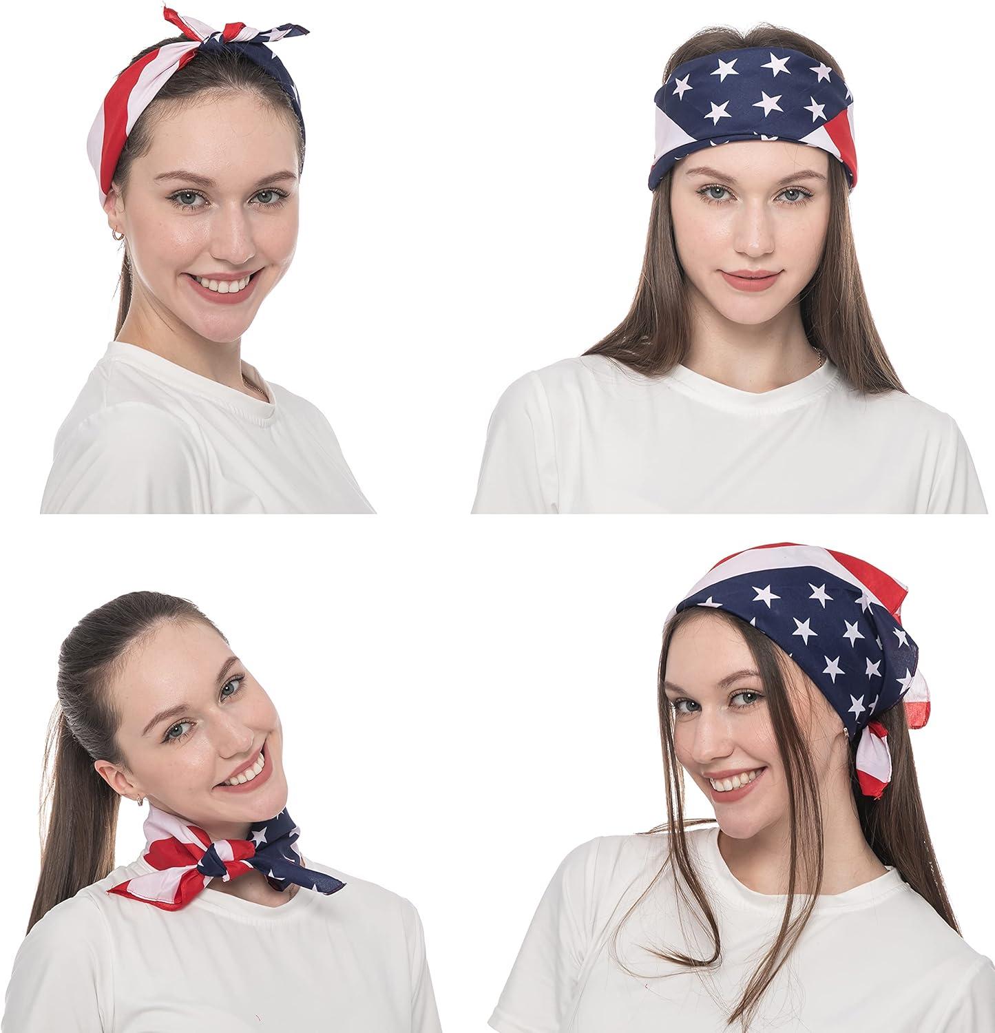 JOYIN 6 Pcs 4th of July Patriotic Bandanas, American Flag Bandanas Headbands for Men & Women, 4th of July Bandana for Party Favors, Independence Day, Memorial Day, Party Accessories