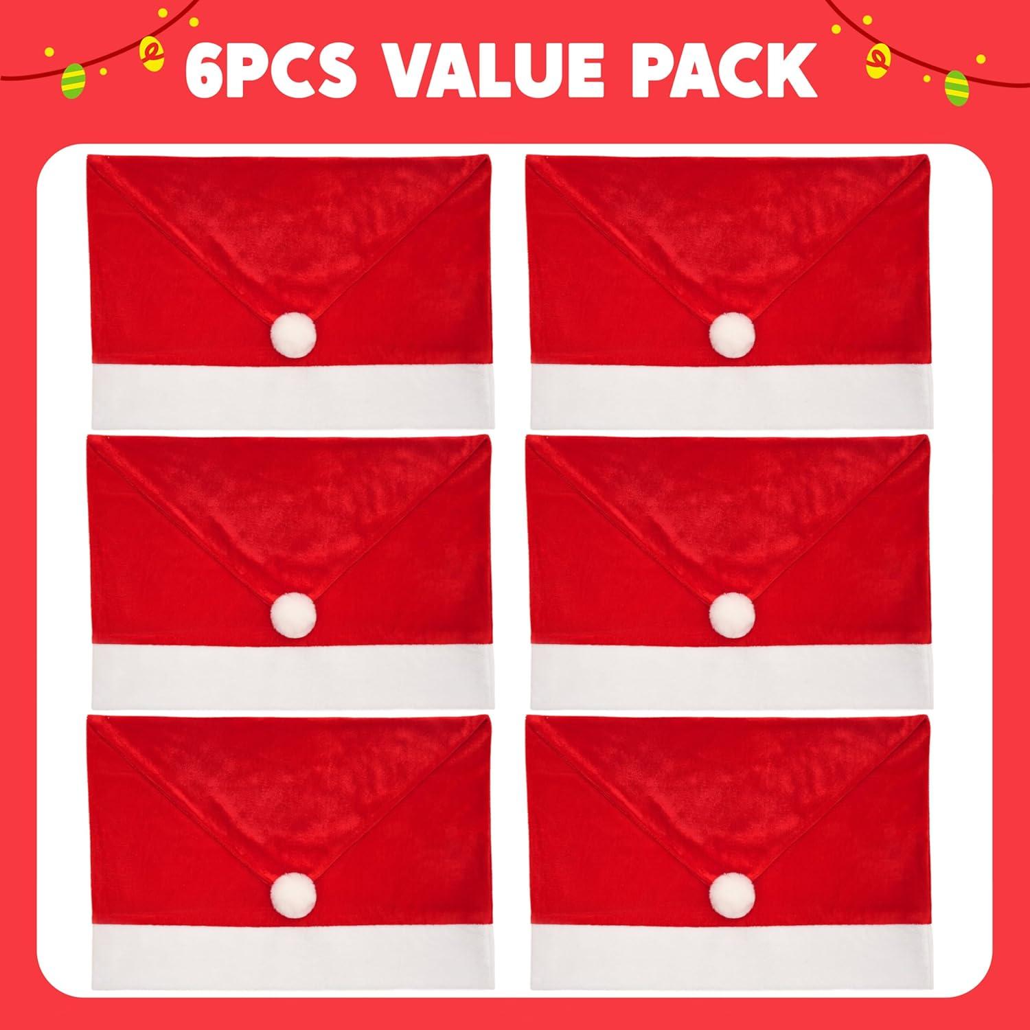 Complete Festive Set: Christmas chair covers set of 6, Our package included 6 pcs Santa claus hat chair covers, adding a festive touch that captures the spirit of the season. These cute Christmas decor red hat chair slipcovers serve as eye-catching decor, turning ordinary chairs into pleasant focal points of your holiday setup.