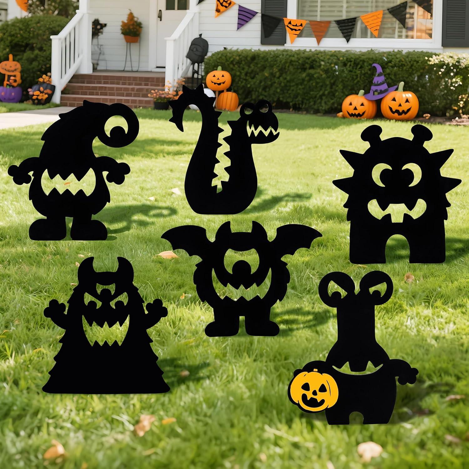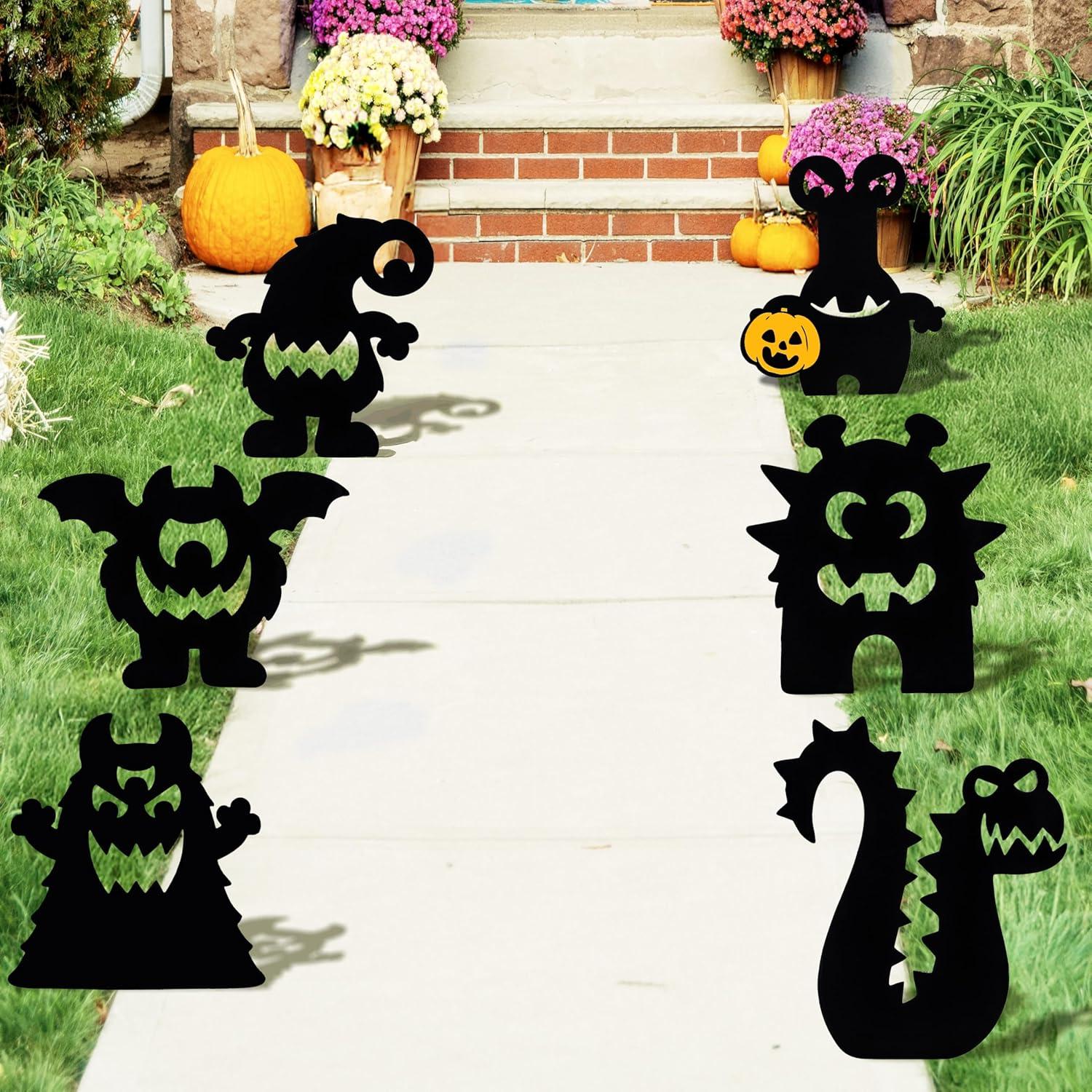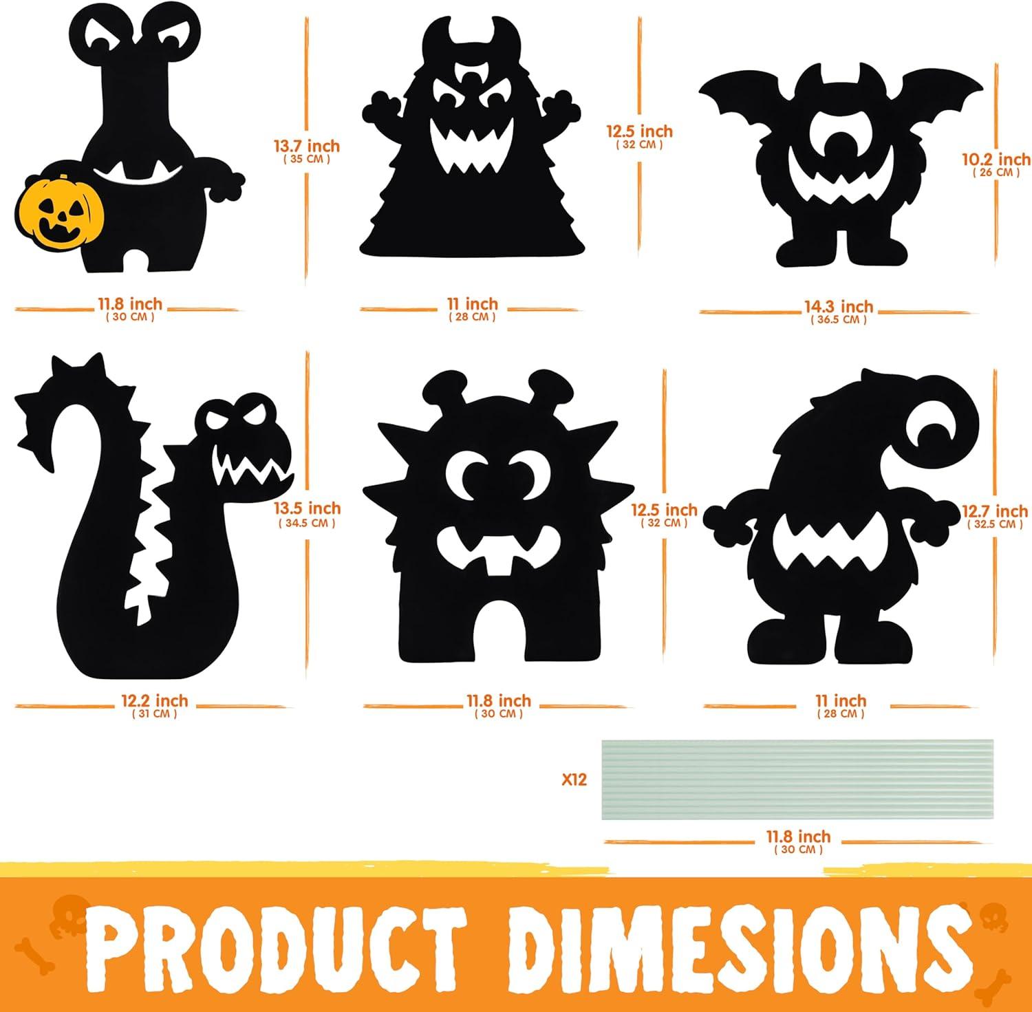 Set Includes: Set includes 6 black cat-shaped ground plates, 12 fiber sticks, and 6 pairs of eyes. These eye-catching yard signs measure approximately 14.6″ x 12.9″, large enough to stand out in a garden, porch, or lawn, while blending perfectly with a Halloween witch's outdoor arrangement.