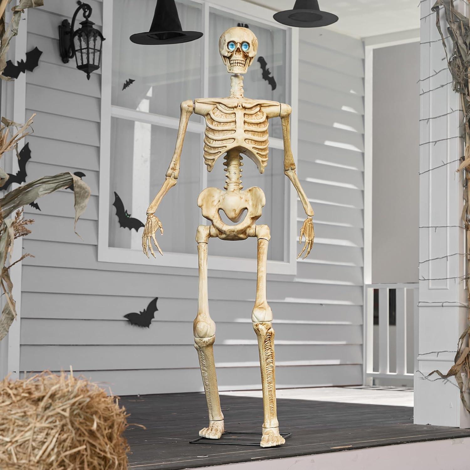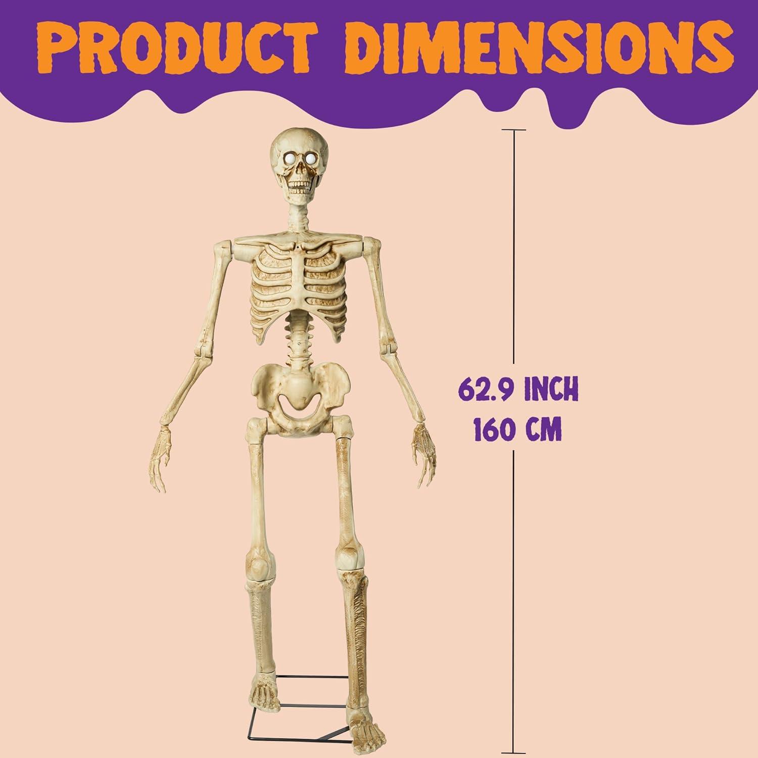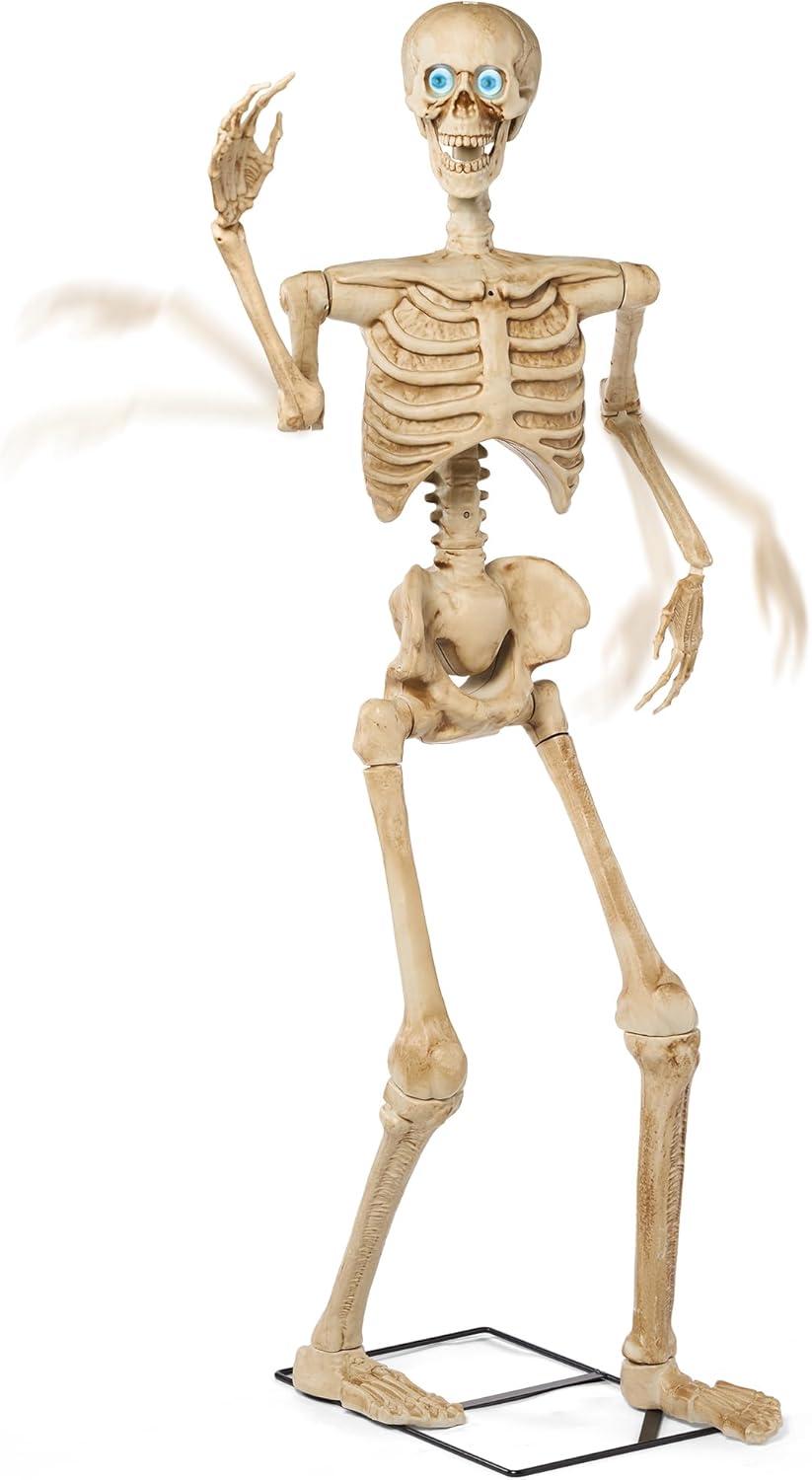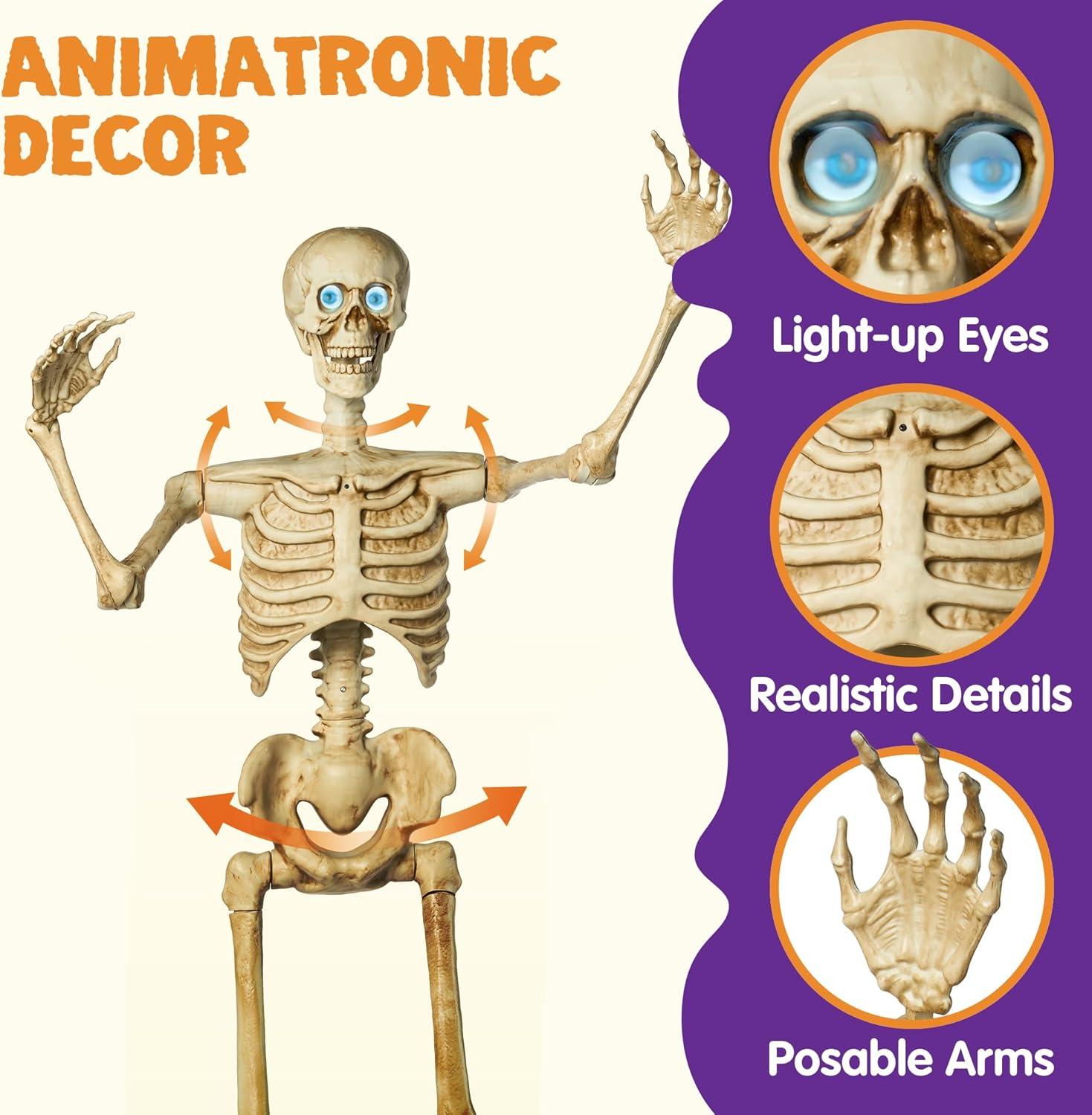 FULL-SIZED ANIMATRONIC SKELETON. Standing at an impressive 60″ tall, this skeleton decoration will command attention and create a spine-chilling ambiance. It's the perfect centerpiece for your haunted house or graveyard scene!