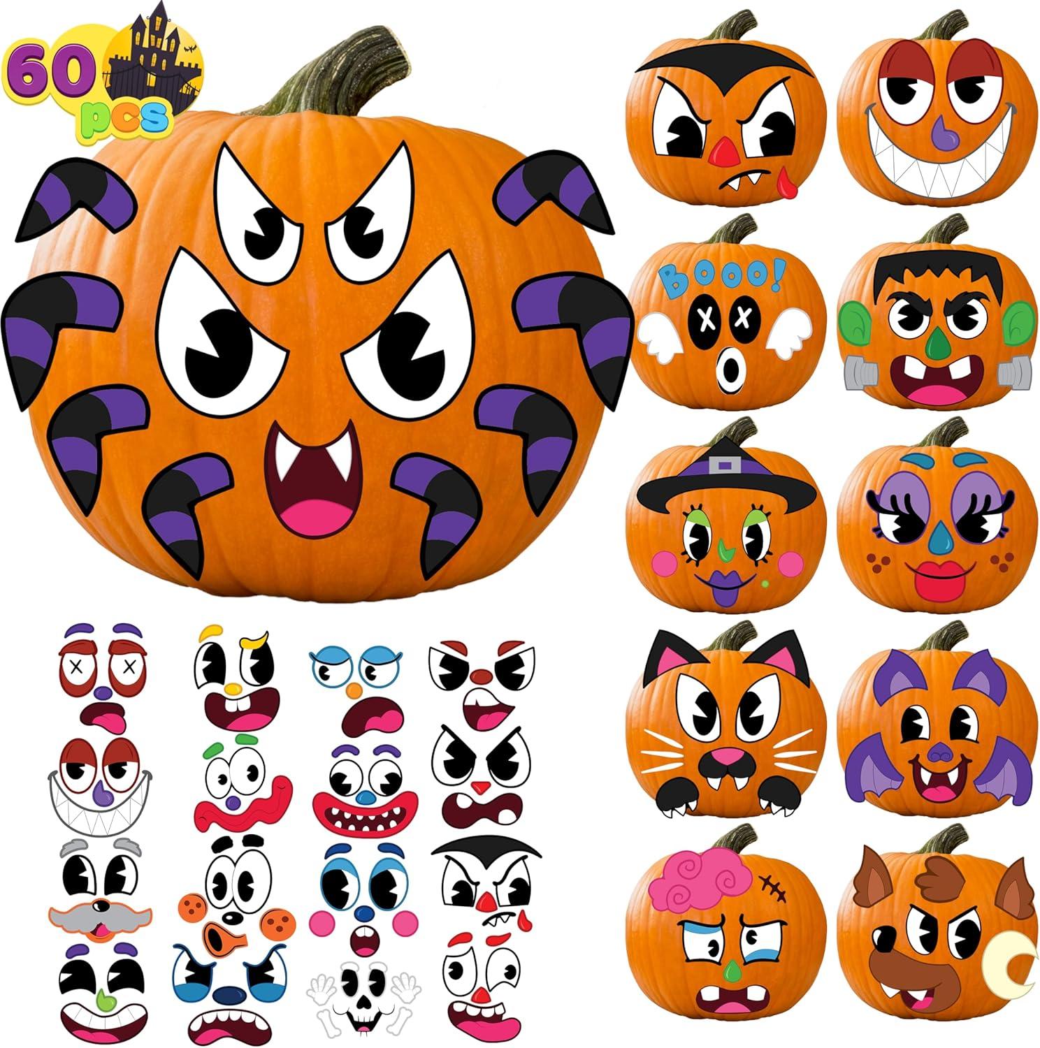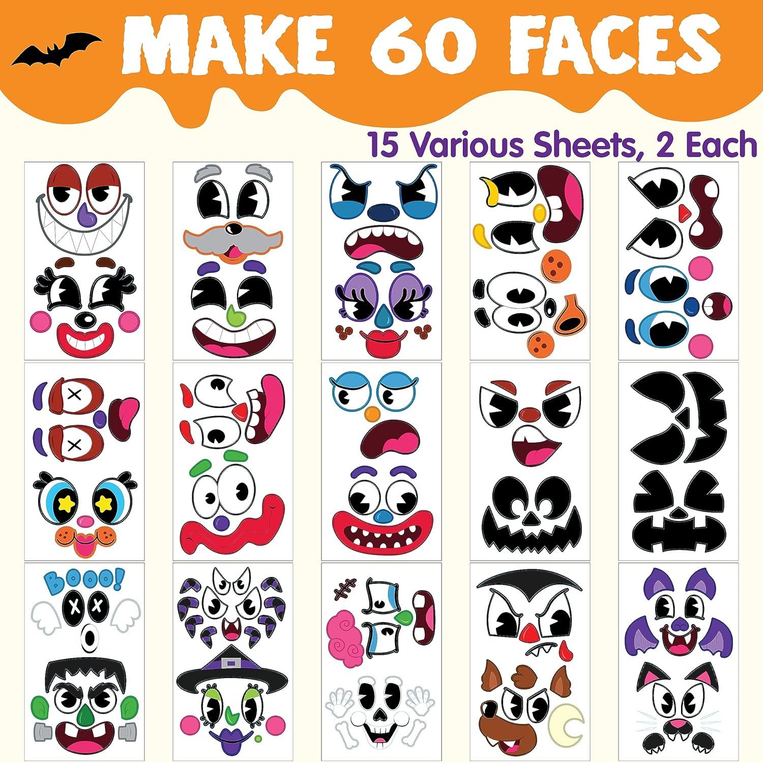 INCLUDE. Our 60 Pcs Halloween Silly Face Pumpkin Stickers features 30 Sheet total of 60 character pumpkin faces Stickers decoration with 15 designs. Which is good decoration for Family and Kids.