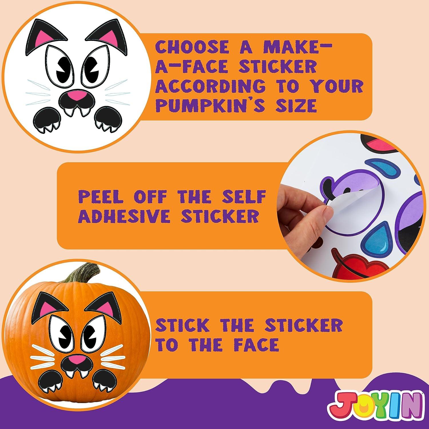 DESIGN YOUR OWN JACK-O-LANTERN: Decorating that Halloween pumpkin just became a breeze! Simply apply the decorating sticker faces on any pumpkin to create cute and fun jack-o-lanterns that stand out.