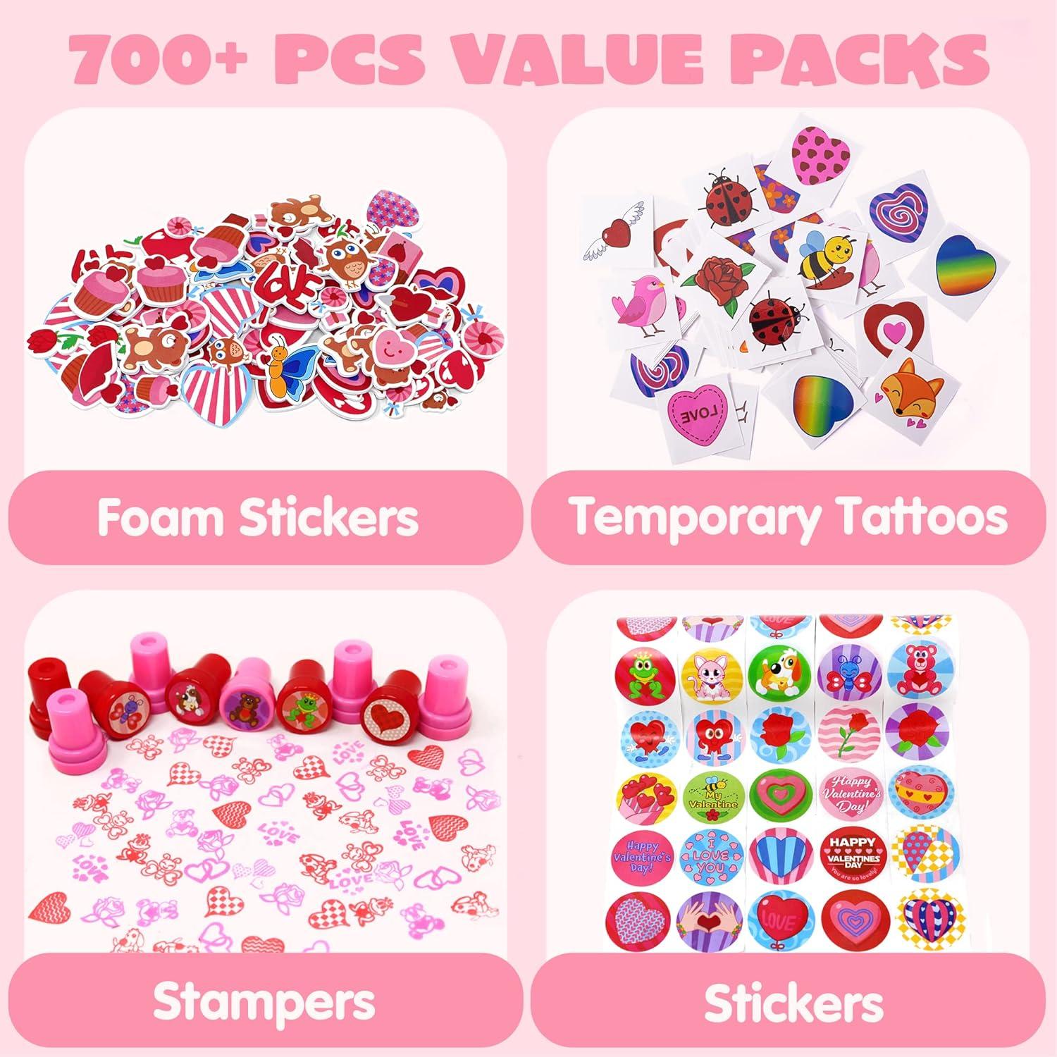 High Quality Collection of 700+ Pieces Happy Valentine’s Day Toys for present Goodie. Durable. Higher Quality. Deluxe Set. Foam Stickers Made of EVA Material.