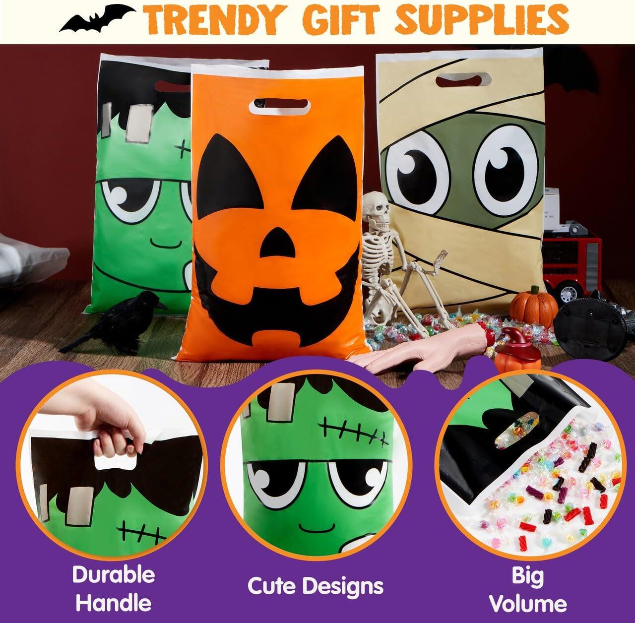 🦇UNIQUE DESIGN. Every Halloween goodie bags set comes with an assortment of 6 creepy yet cute designs that include everything from Vampire, Frankenstein, Pumpkin. Mummy, Ghost, and Cat, making them a fun and festive addition to any Halloween event! Perfect for Haunted Halloween Parties, Trick-or-Treating, Party Event Supplies, Halloween Snacks, Halloween Goodie Bags, Classroom present Goodie Bags, Halloween Treat Bags, Classroom Prizes and More!