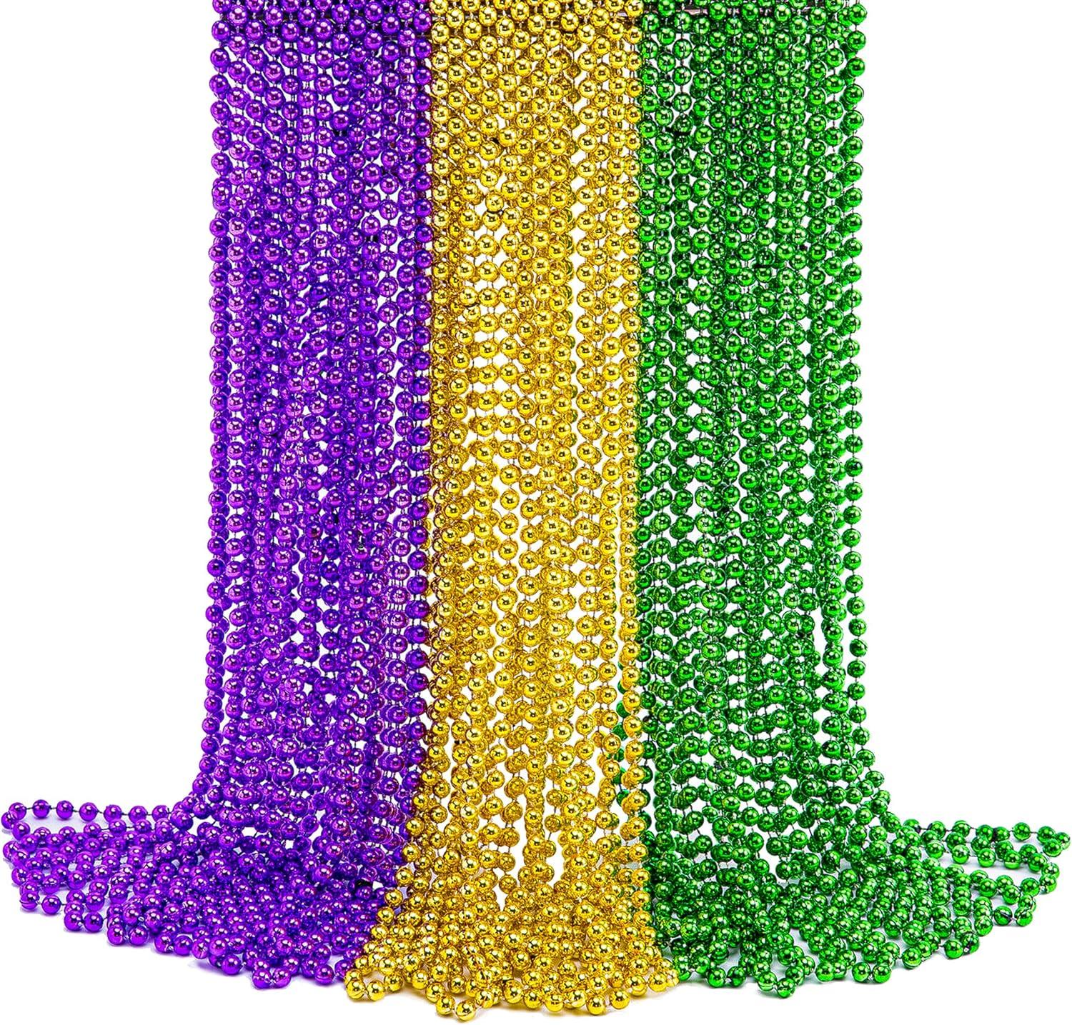 Mardi Gras Necklaces: Our Mardi Gras Beads Necklaces Set includes 72 Pcs Mardi Gras Beads Necklaces(gold, green, and purple).