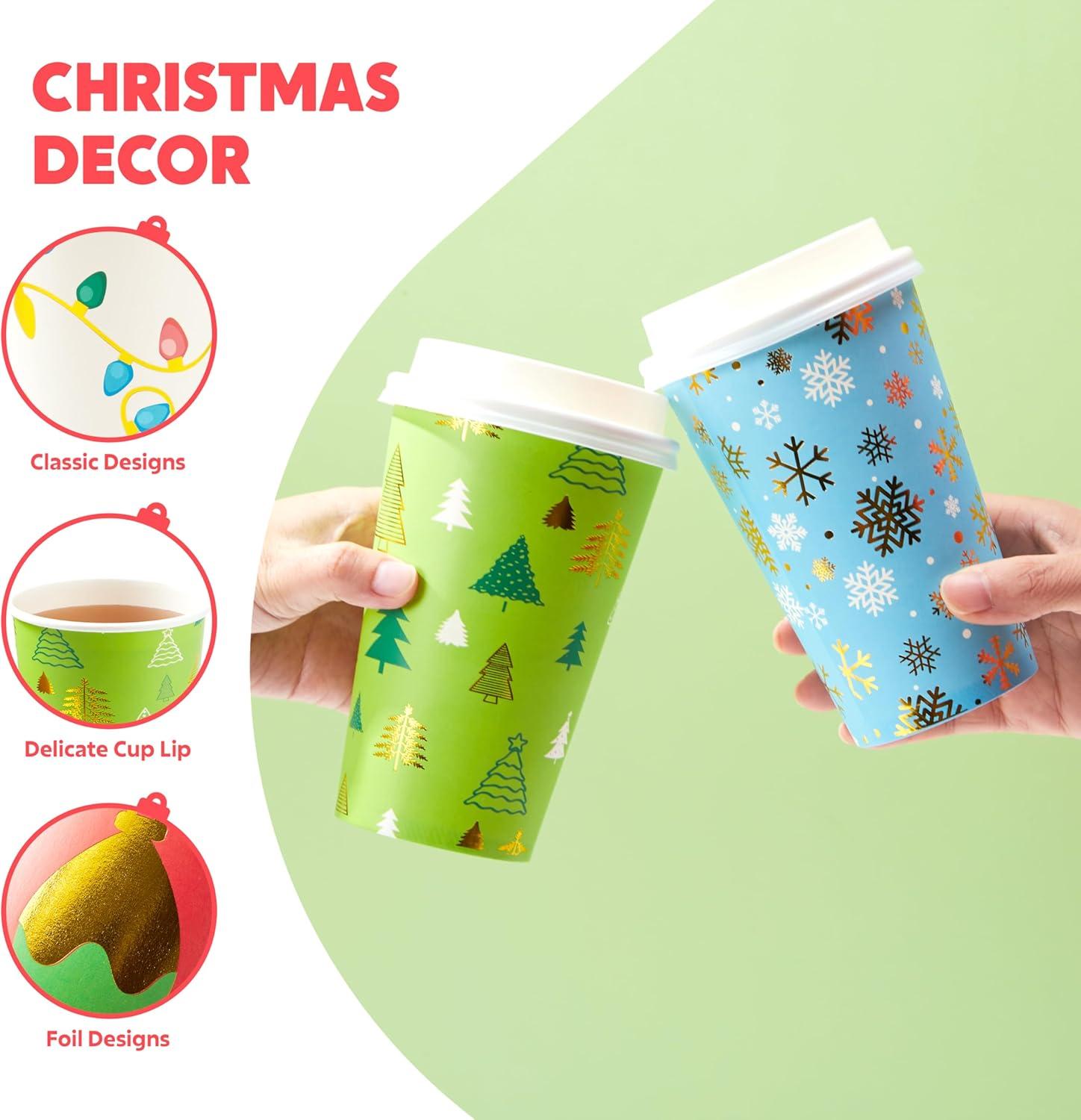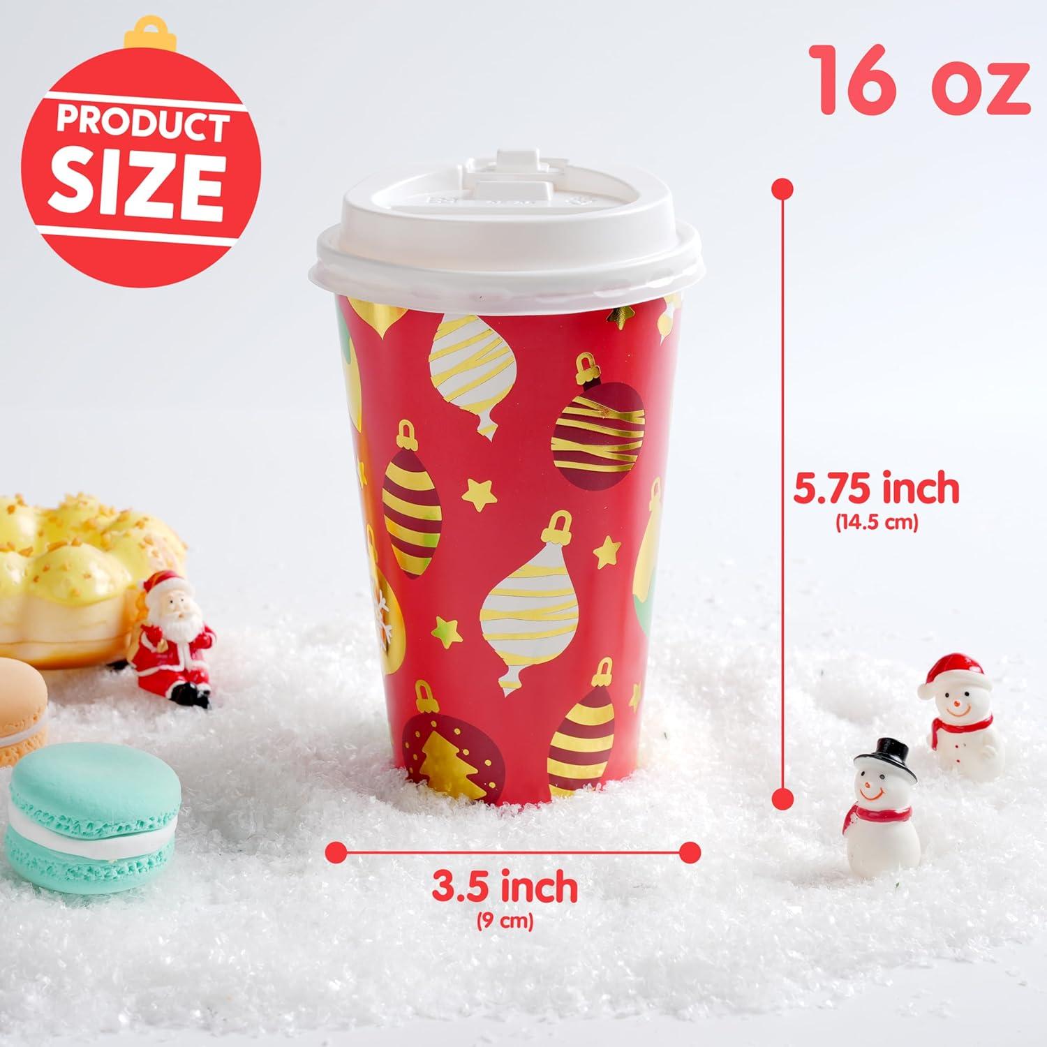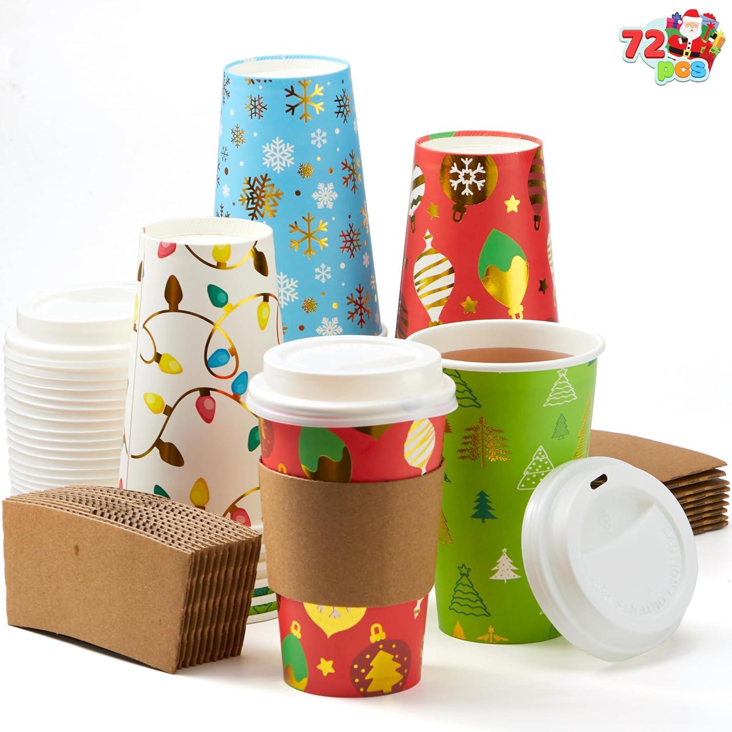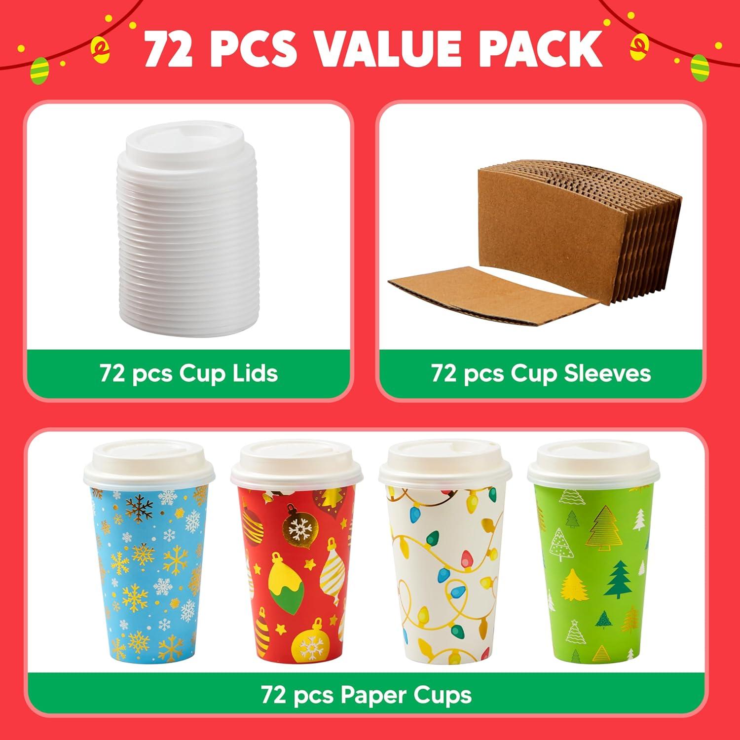 Christmas Party Complete and Value Pack: Our 16 oz Christmas Paper Drink Cup Set includes 72 pcs disposable paper cups with lids and sleeves in 8 various Xmas designs.The pack quantity is affordable for any party and sufficient for party use and daily use. Making it a great value for Christmas party supplies, allowing everyone to enjoy their favorite beverages.