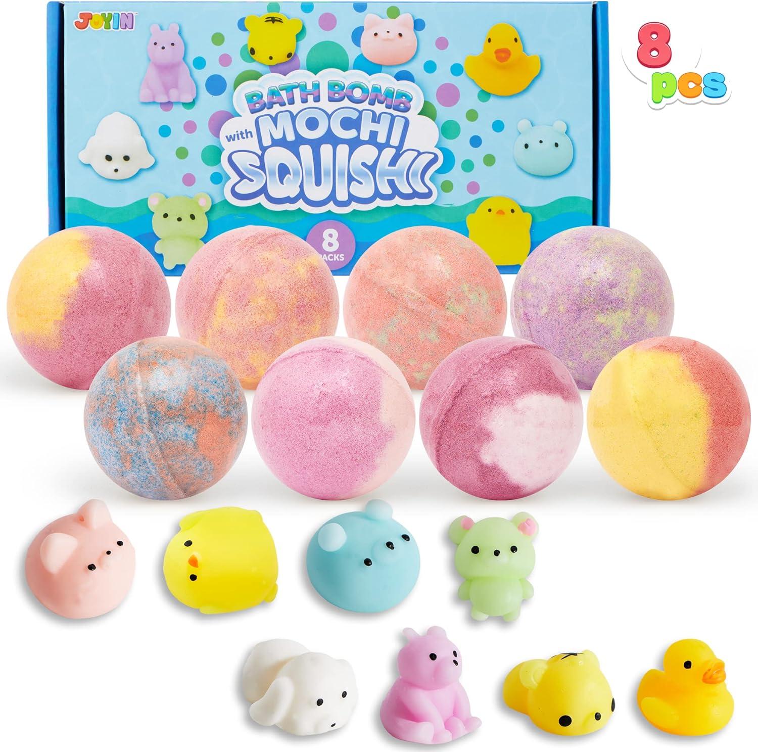 VALUE SET: JOYIN Kids Bath Bomb Gift Set includes 8 bath bombs (5oz) with assorted mochi toy inside. These bath balls are rich and full of shea butter & coconut oil, which help moisturize and smooth your dry skin