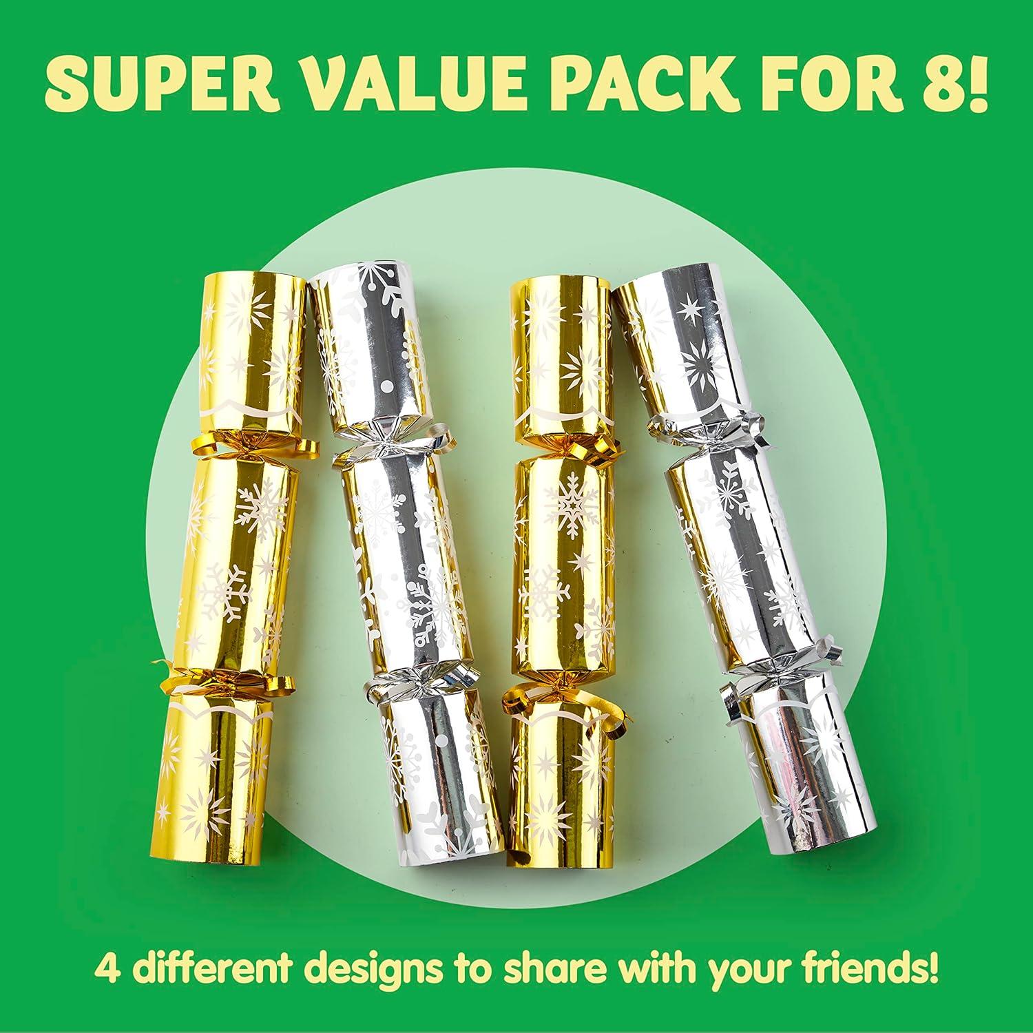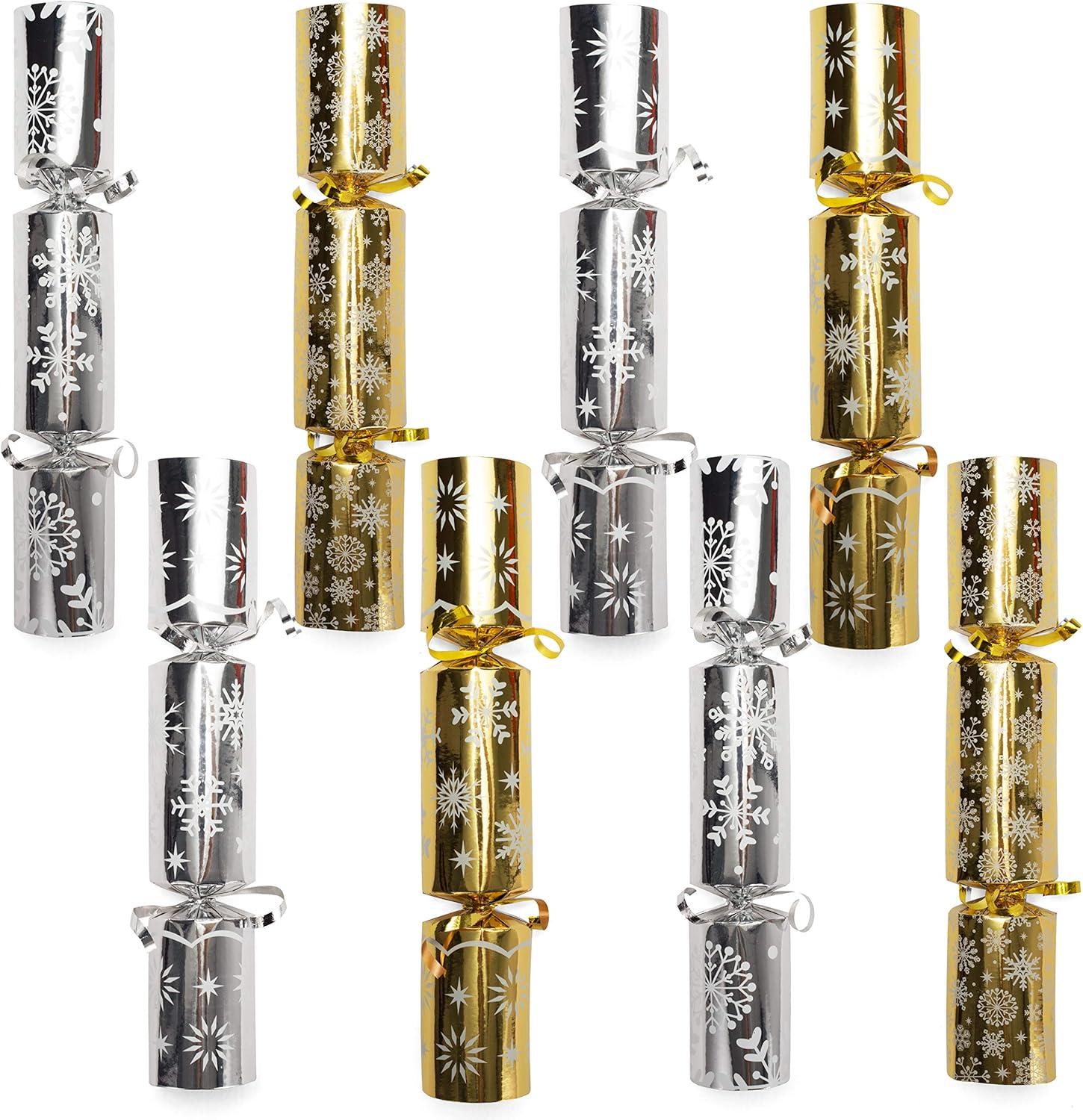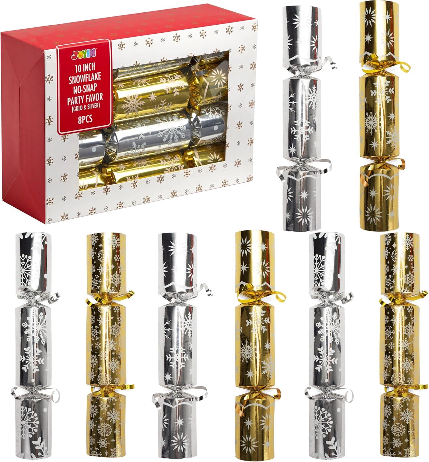 JOYIN 8 Pack Christmas Party Favor Non-Snap Blue & White Snowflake Design Party Table Favors with Holiday Party Favor Supplies for Kids and Adults, Christmas Parties, Dinners and Holidays(Gold&Silver Snowflakes)