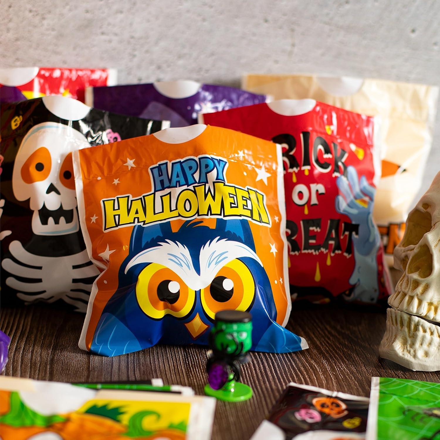 Unique Design & Easy To Use. Why not pack your Halloween goody bags to hand out instead of a huge bucket of candy and let the youngsters help themselves? The youngsters will like them since they will be able to unwrap their food like a real present. These halloween bags for trick or treat are less scary and more welcoming, making them excellent for younger children. These snack packs are guaranteed favorites on all Hallows eve. Thanks to their adorable Halloween design!