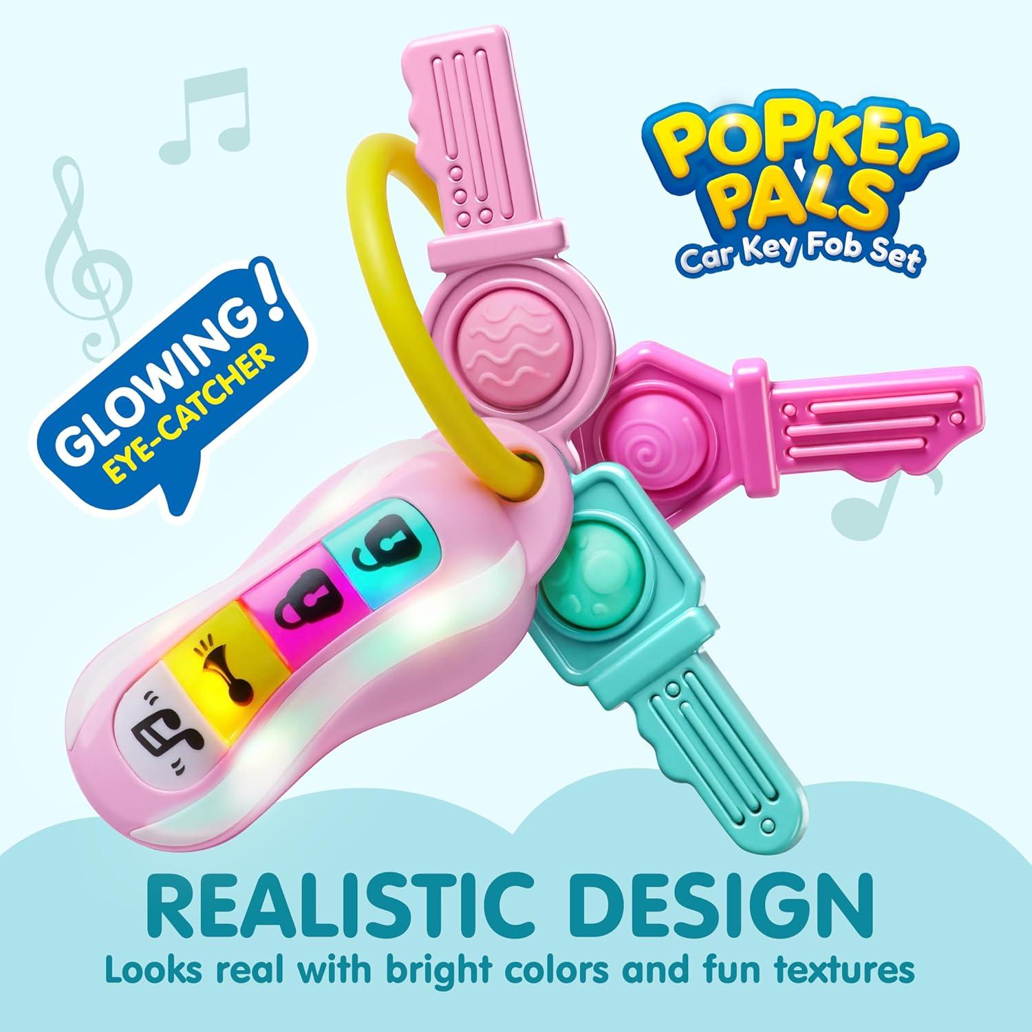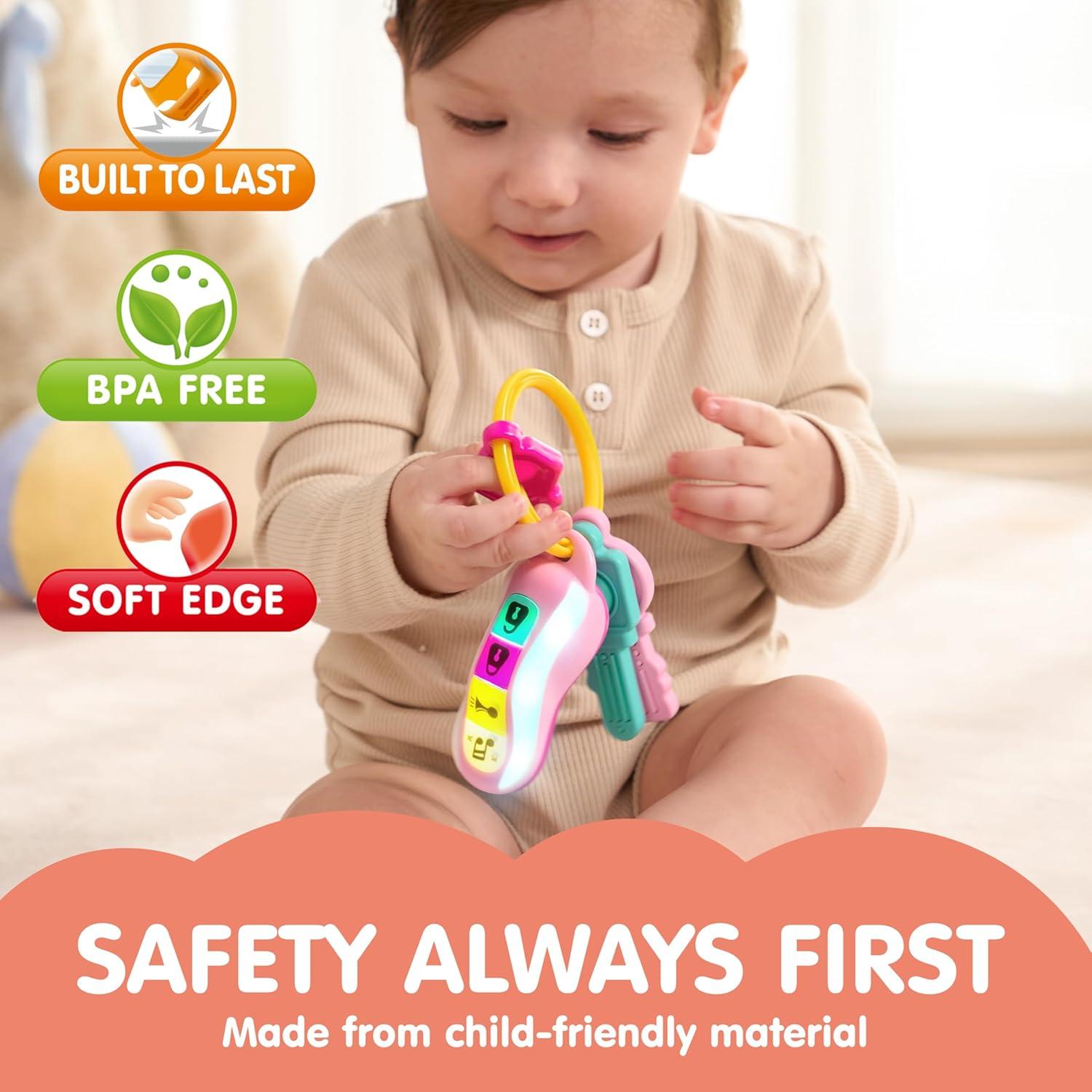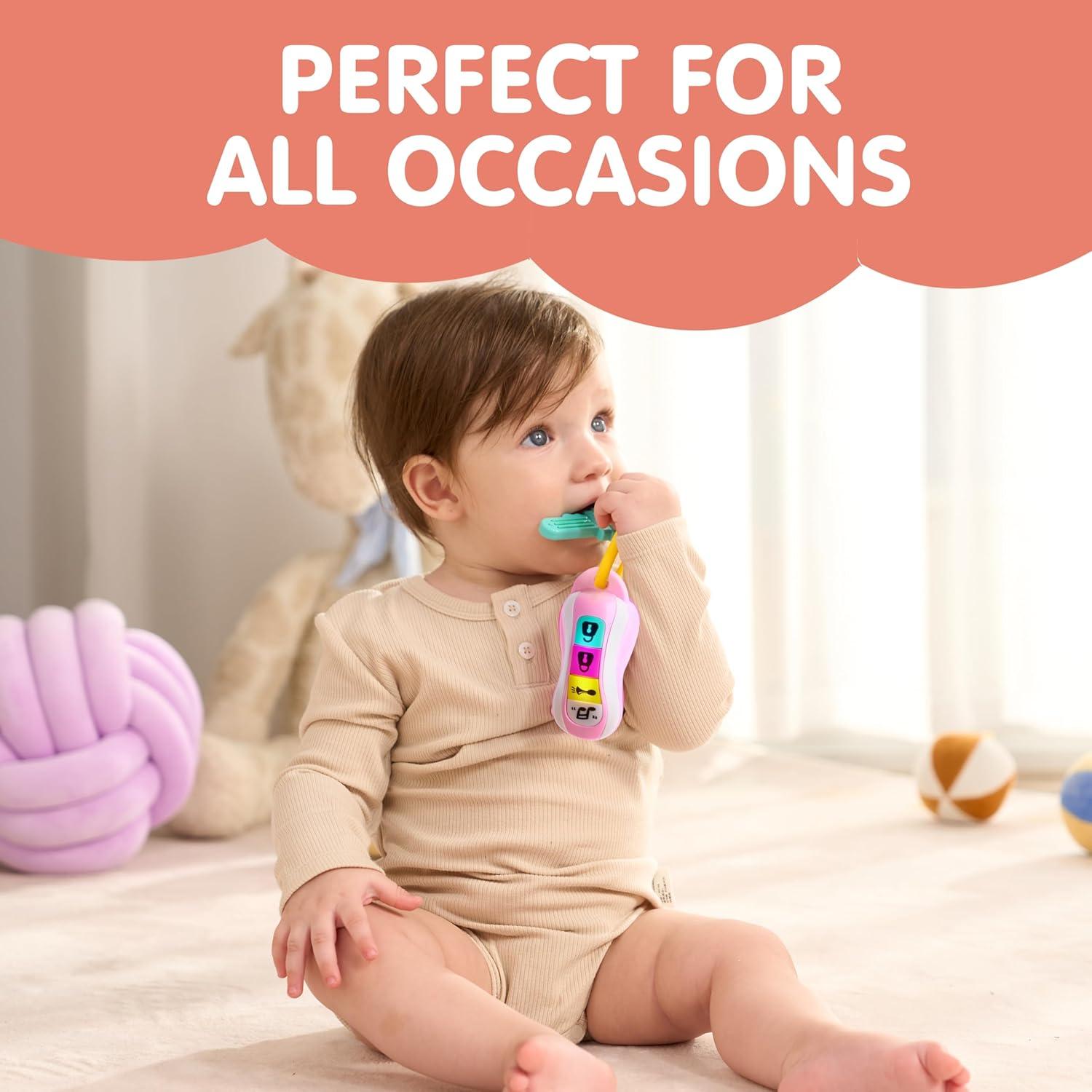 JOYIN Baby Car Keys Teether - Toddlers Sensory Learning Toy w/Music & Lights - Musical Toys for Travel - Birthday Gifts for Baby Age 10+ Months(Pink)