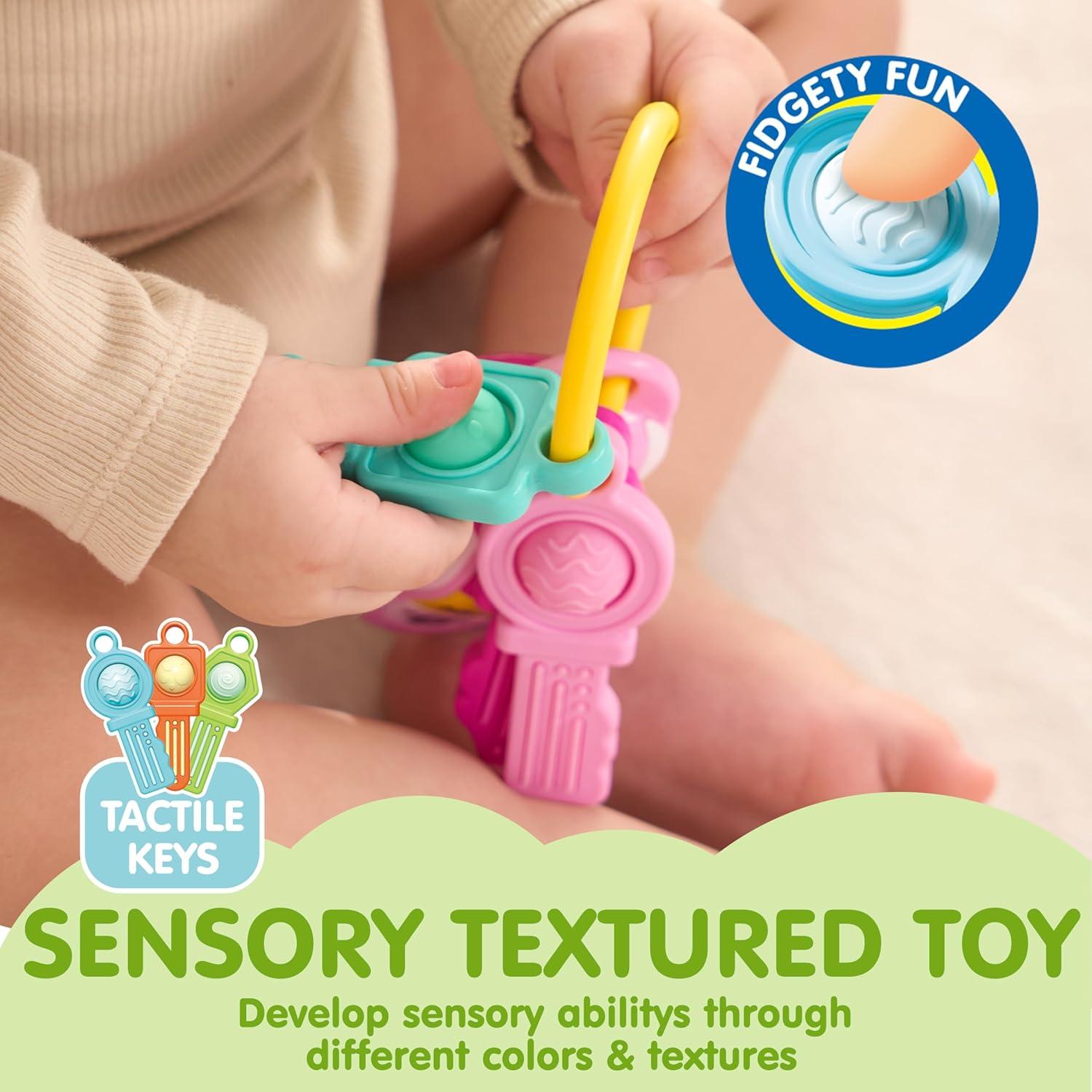 Poping Key Fun: The middle of the 3 play keys, designed for baby and toddler stocking stuffers, is made of squeezable silicone, offering hours of press-and-pop entertainment. Each key is unique, with different textures ensuring a range of tactile experiences