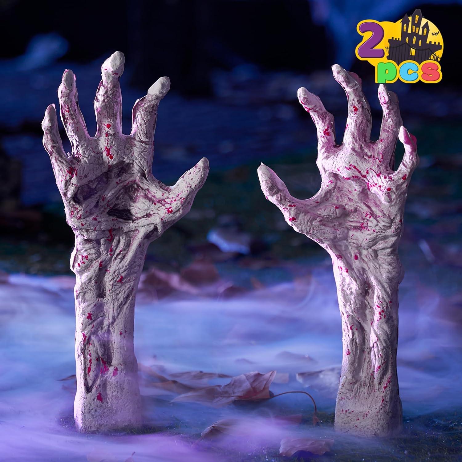 JOYIN Bloodstain Zombie Arm Stake Groundbreaker Halloween Outdoor Decoration Realistic Looking Fake Arm Hands Yard Stakes for Halloween Haunted House Yard Decoration