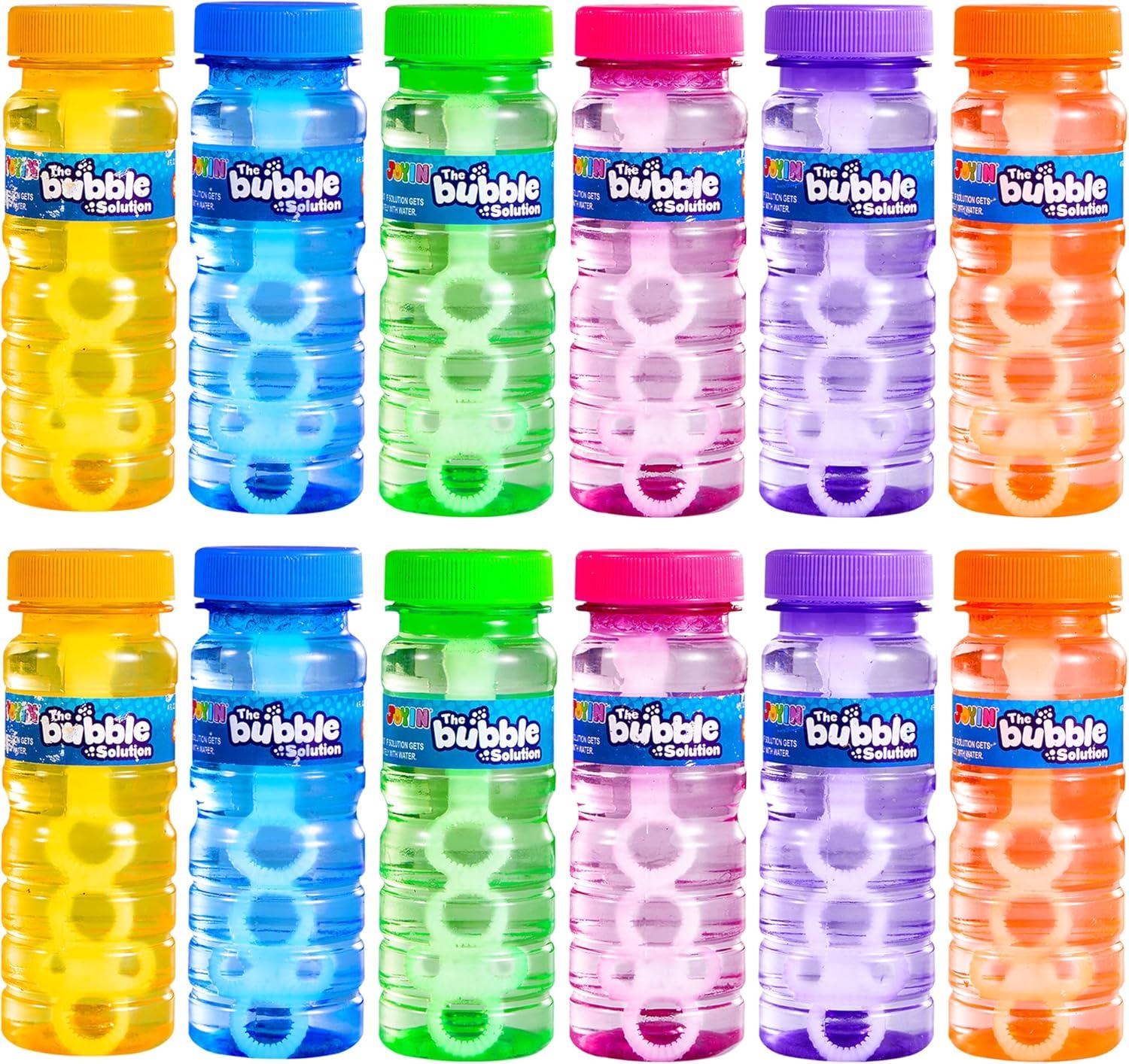 SUPER VALUE PACK & VARIETY. the Bubble Bottles with Wand Assortment contains 12 4oz Bubble Bottles with Wand Assortment, Including Yellow, Blue, Pink, Green, Orange, Purple Colors.