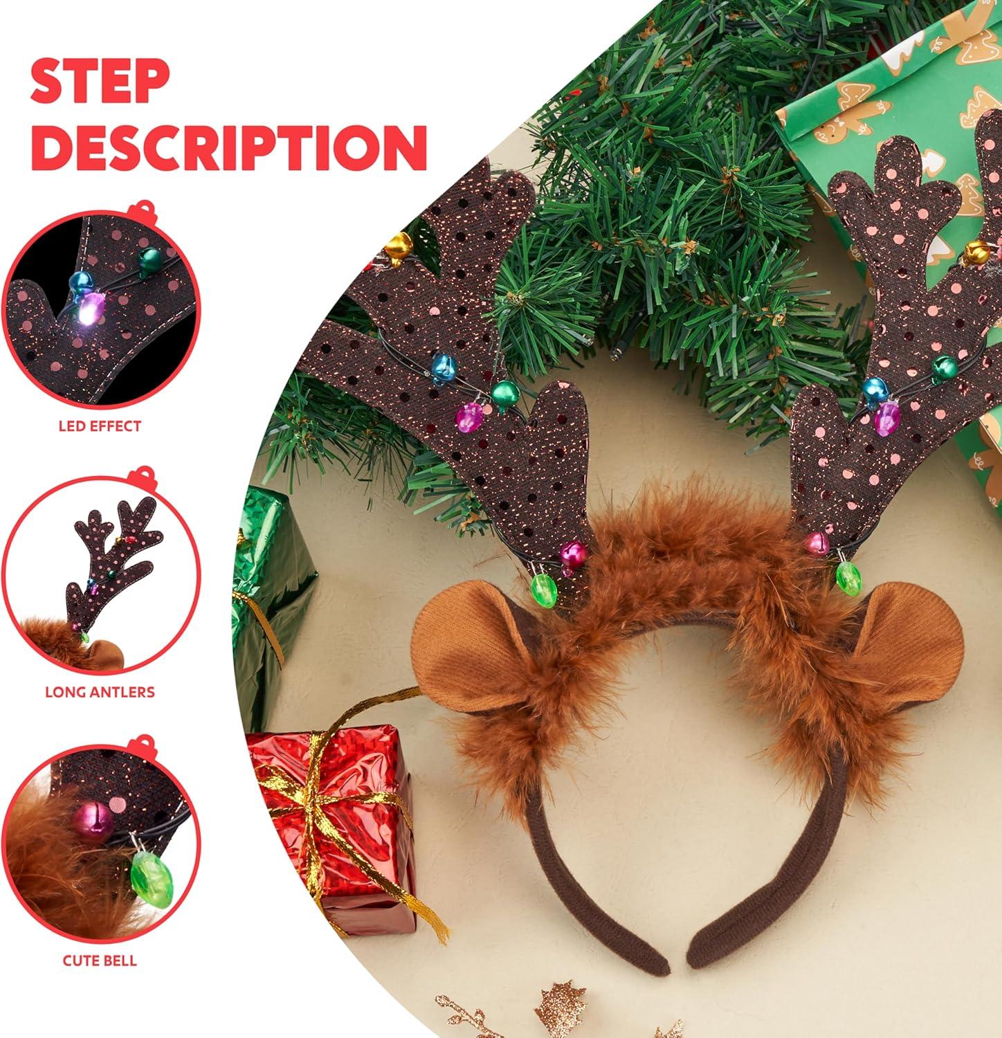Complete Festive Set: Our package include 2PCS Light Up Christmas reindeer headband