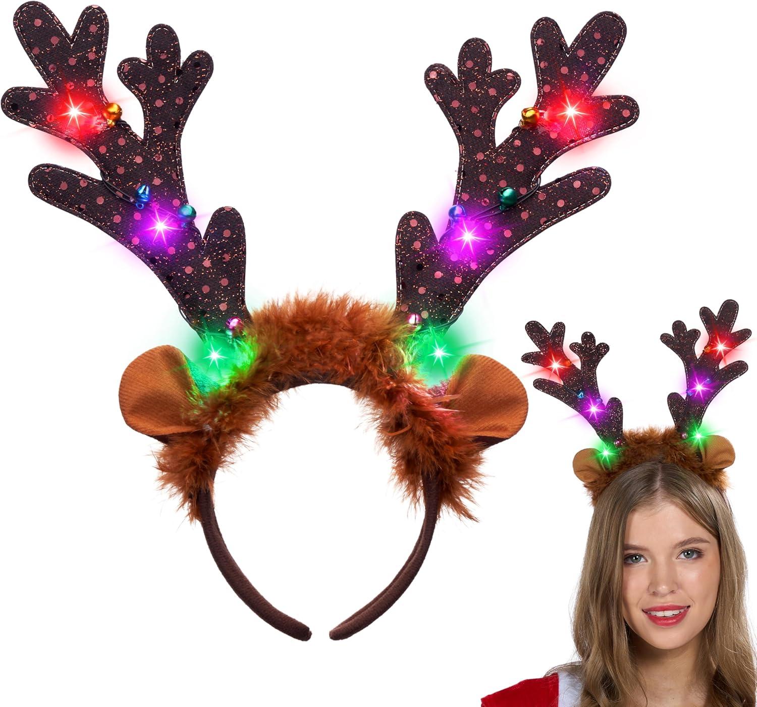 JOYIN Christmas 2PCS Light Up Cute Reindeer Headband Adult Kids Party Favor Supplies, Xmas Accessories for Christmas Holiday Parties, Annual Holiday, Photos Booth(Reindeer)