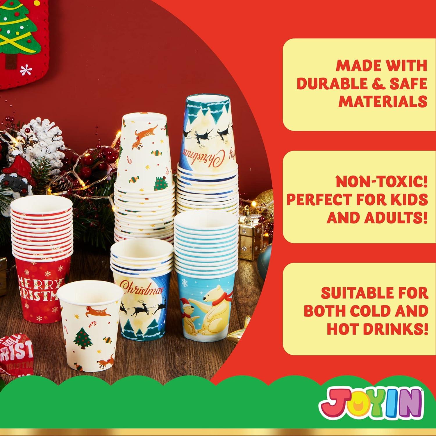 JOYIN Christmas 48 Pcs Paper Cup with Holiday Design, 9 oz Xmas Disposable Dinnerware Cups Party Supplies for Hot and Cold Beverages(Cute)