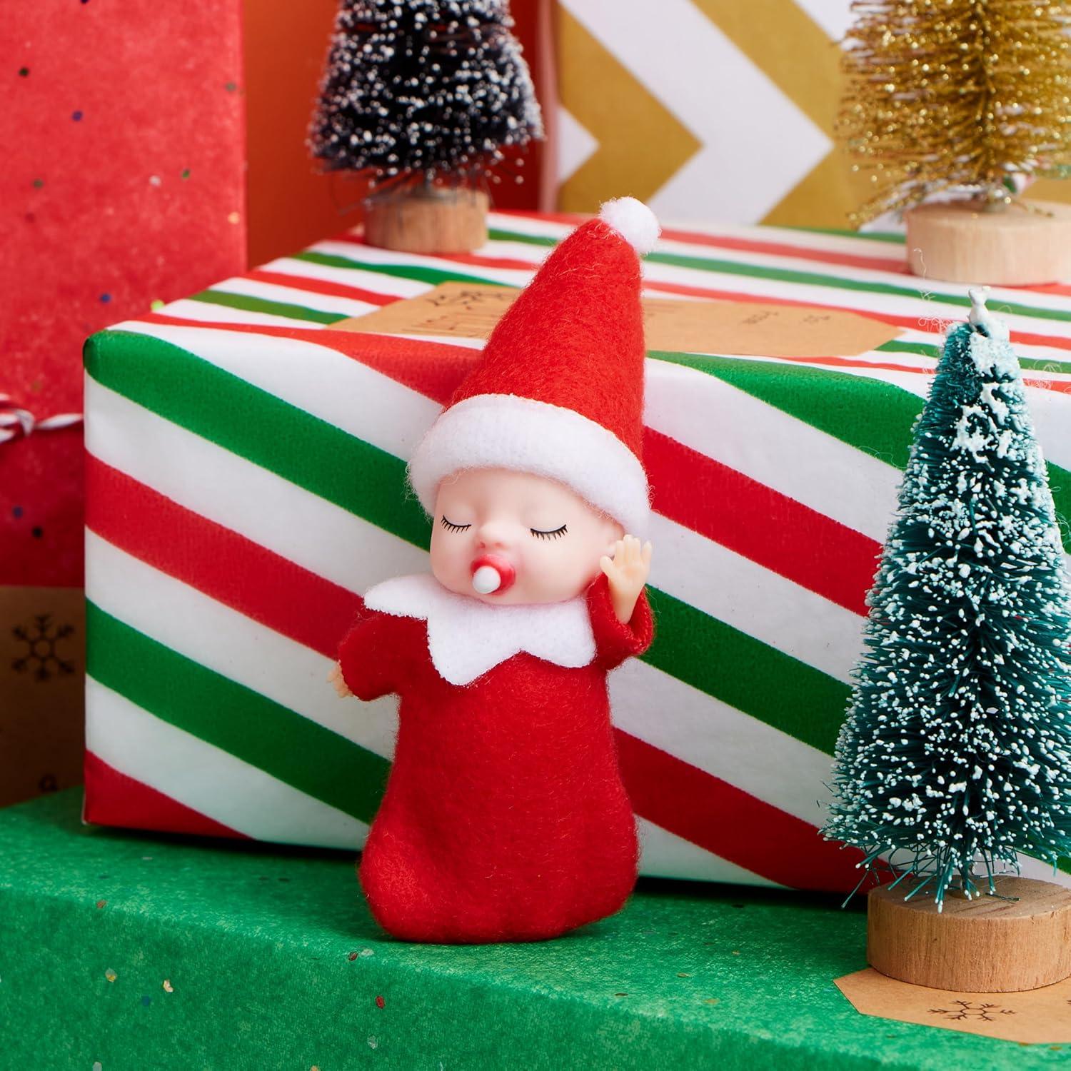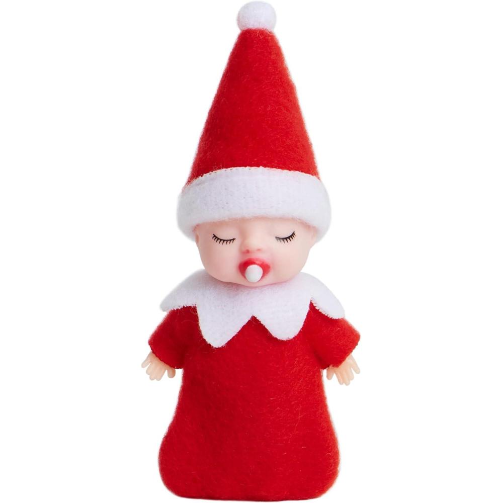 Unique Design: This mini elf doll is dressed in red, with a pacifier and red hat and has a white petal-shaped collar.This tiny elf dolls feature a distinct no-feet design, detachable head, and removable hat.. Elf doll toys have become a Christmas tradition, and you can even buy miniature clothes for the doll to create a fascinating holiday atmosphere. The Christmas mini elf doll set is perfect for holiday celebrations.