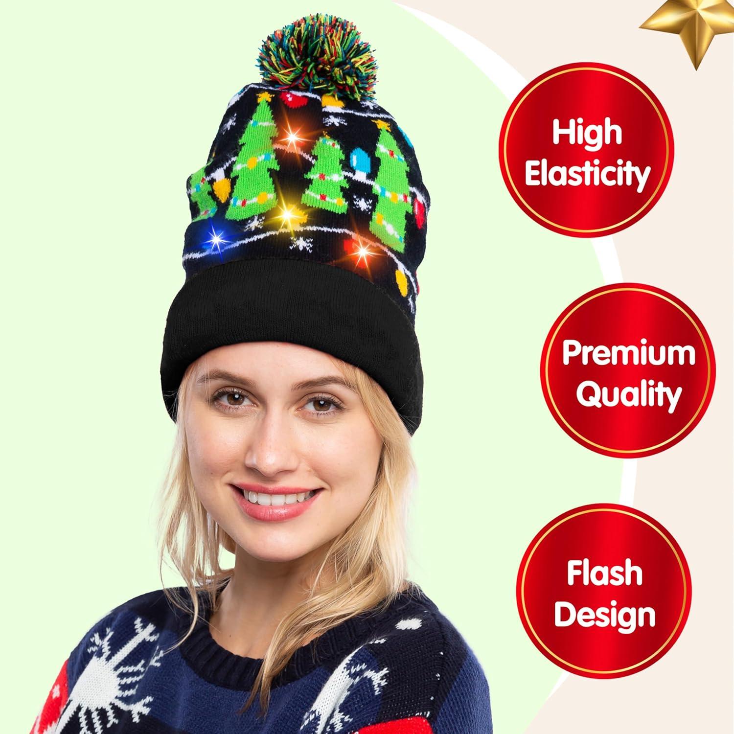 JOYIN Christmas Light-up Knitted Beanie Cap Ugly Sweater LED Hat Beanie with 6 Flashing Modes Funny Hat for Women Men Christmas Accessories Party Supplies Unisex Winter Black