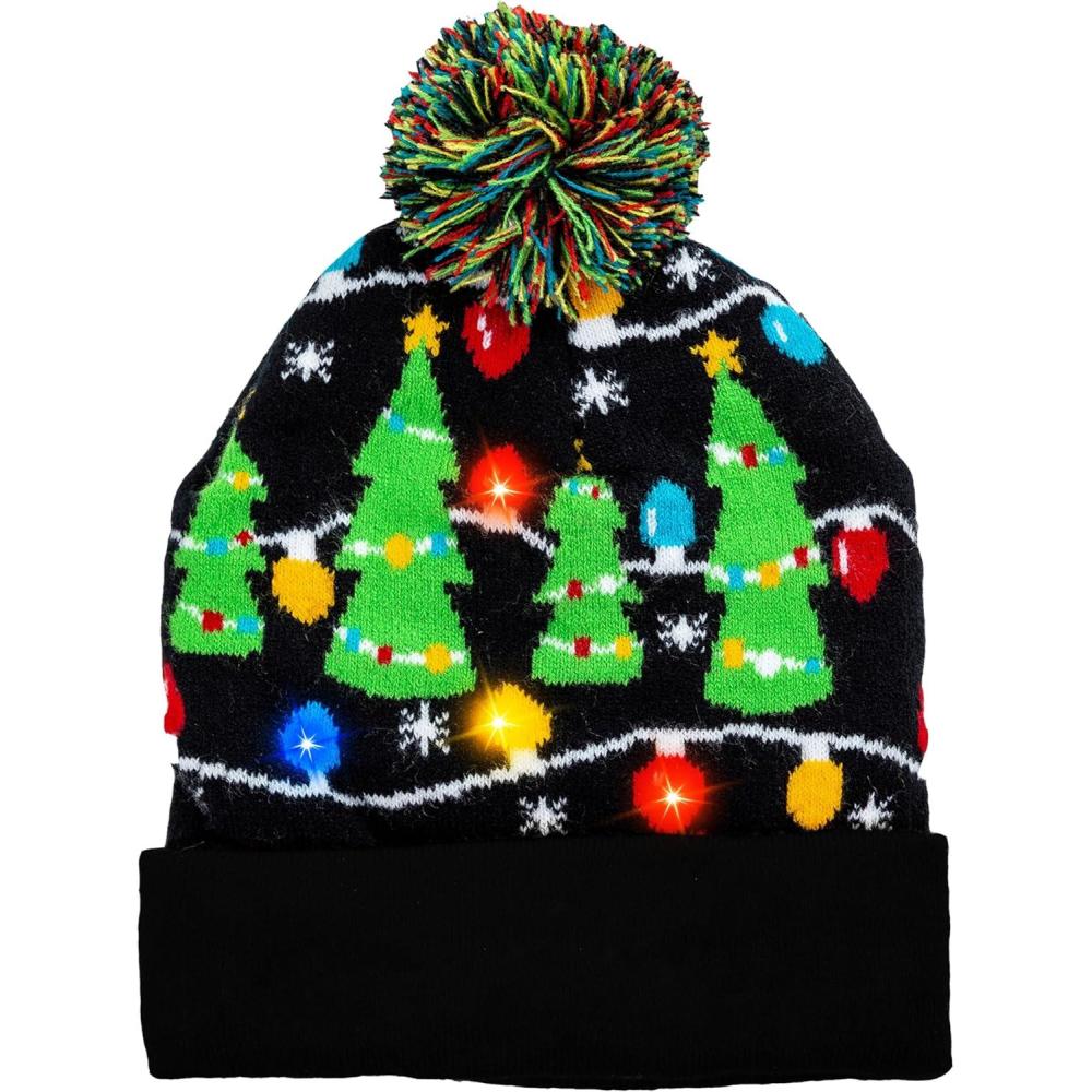 imageJOYIN Christmas Lightup Knitted Beanie Cap Ugly Sweater LED Hat Beanie with 6 Flashing Modes Funny Hat for Women Men Christmas Accessories Party Supplies Unisex Winter Black