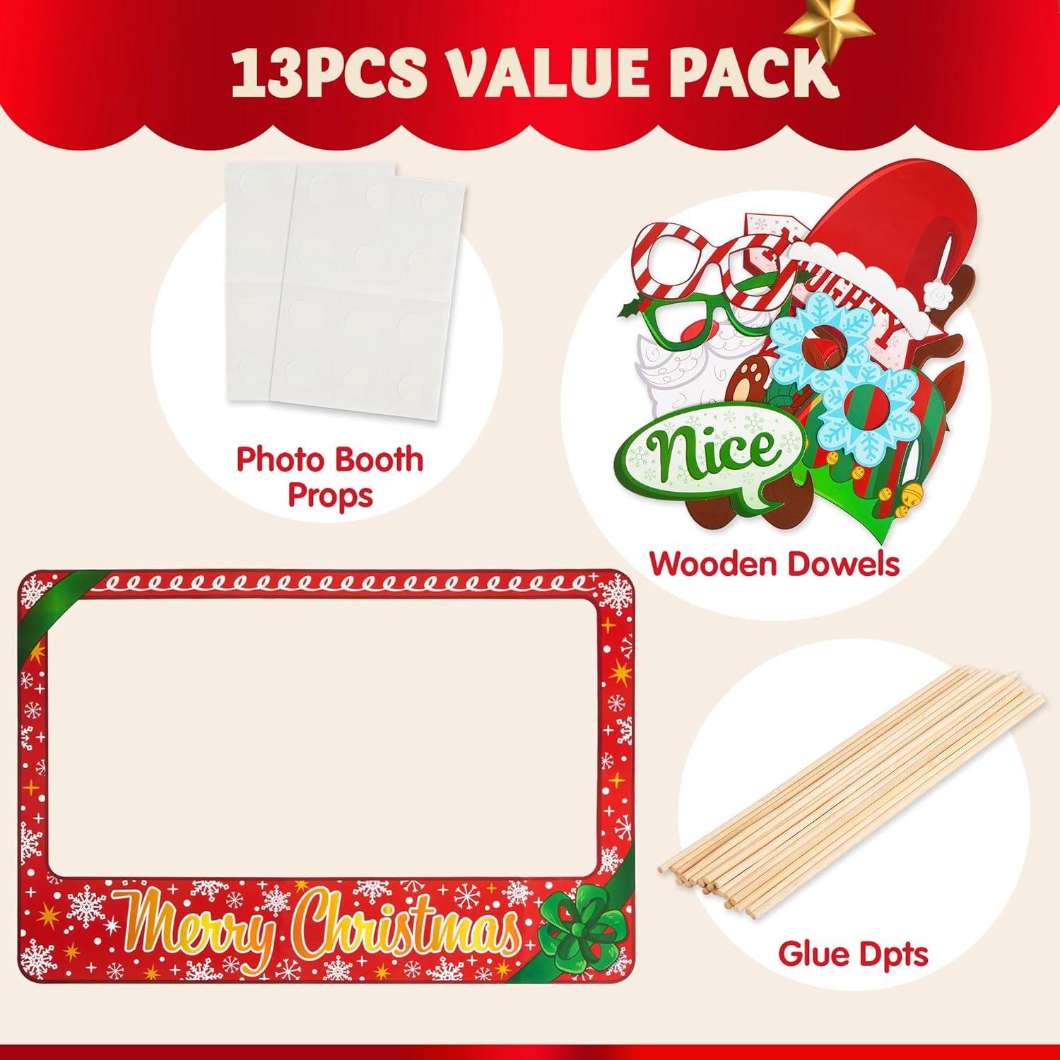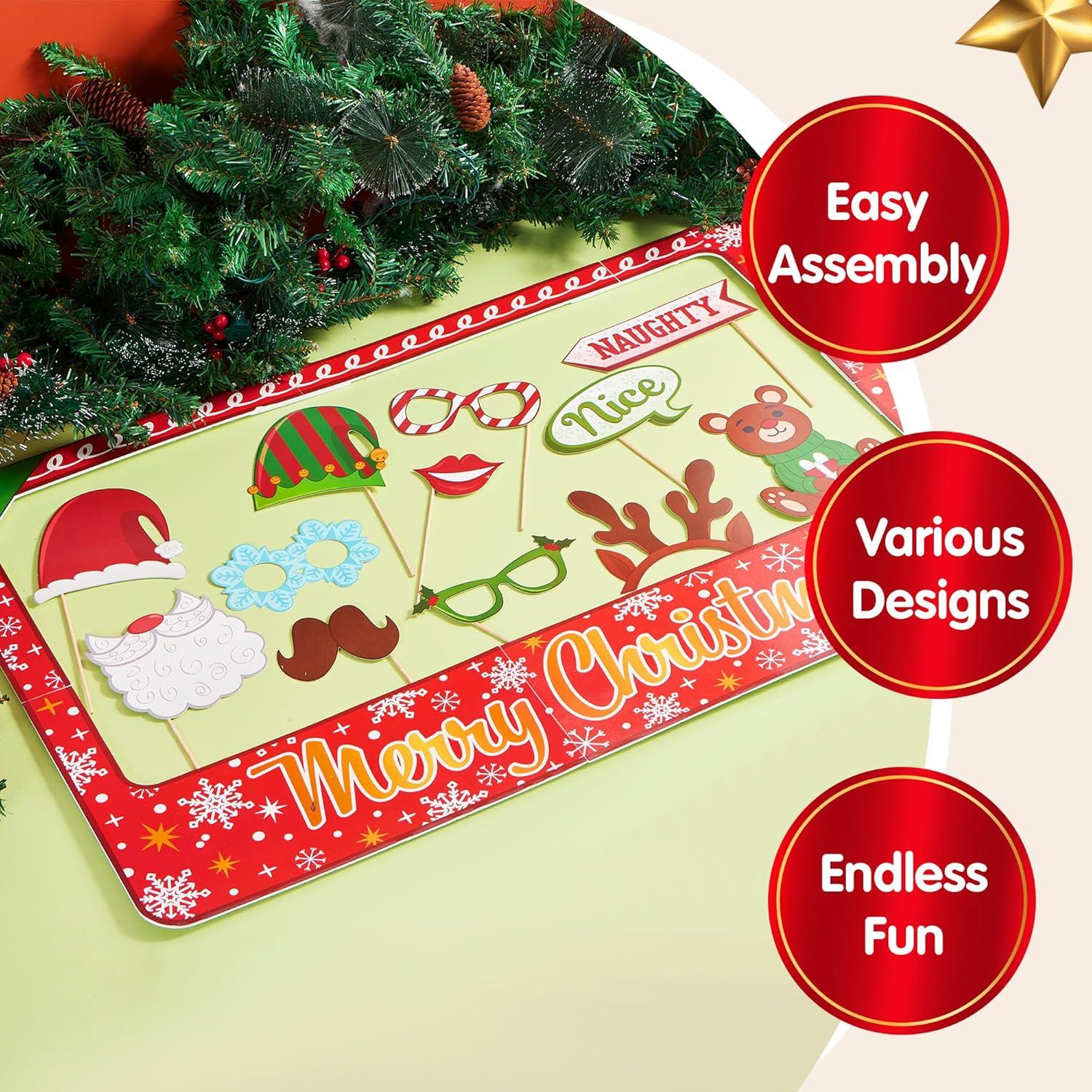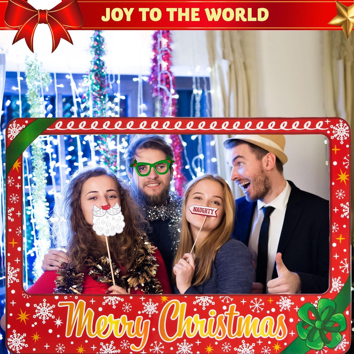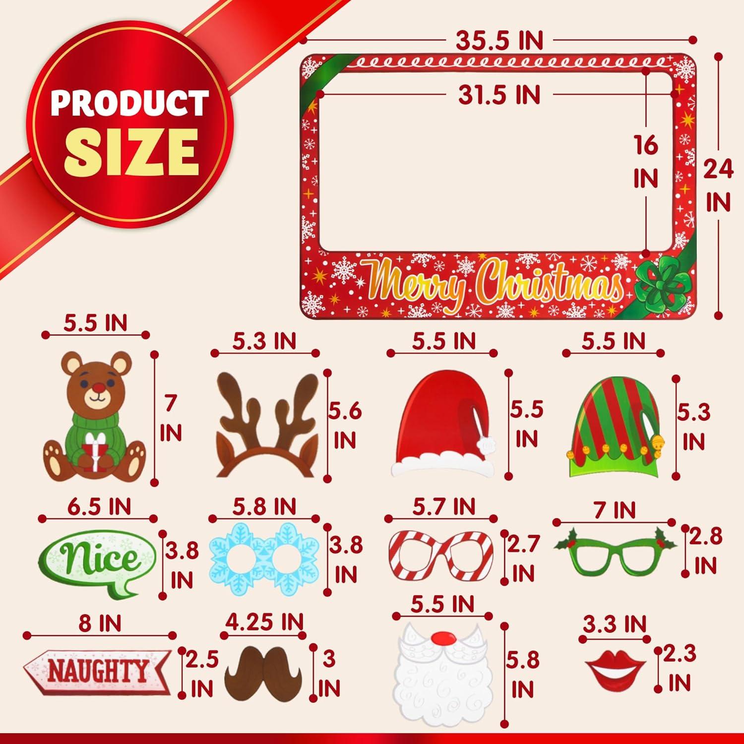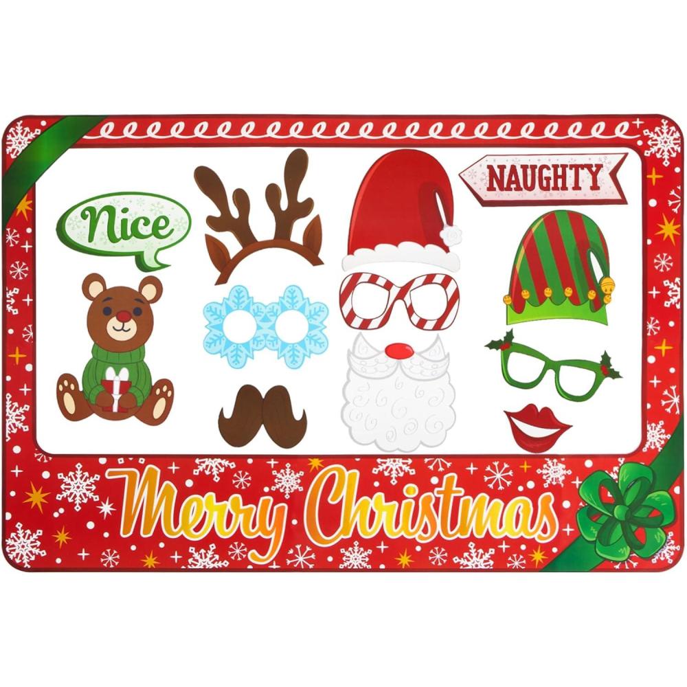 UNIQUE DESIGN: Our festive Christmas Photobooth Props and Frame includes 1 big frame and 12 pieces of props, sticks, adhesive. The product features Naughty Decorations Designs for kids, adults, teenagers of any age.