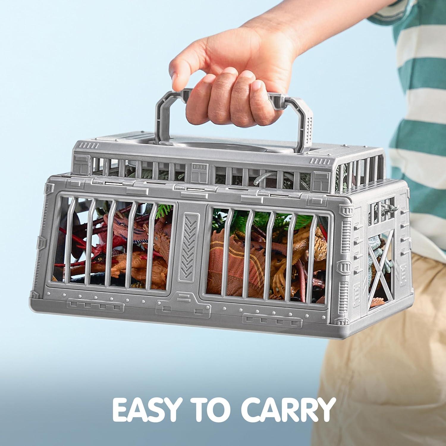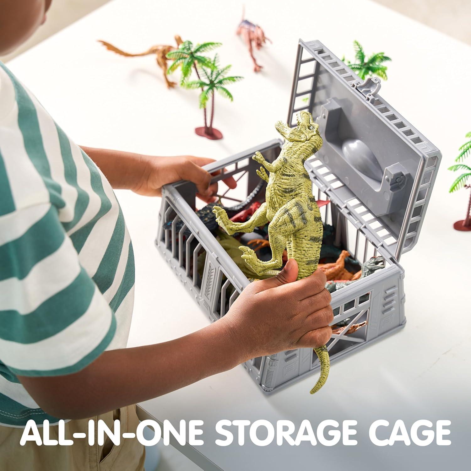 Dinosaur Cage Storage Container: This dinosaur toy set comes with a meticulously designed dinosaur cage storage container, not only effectively organizing and storing the dinosaur toys but also adding more play scenarios, allowing children to fully unleash their imagination.