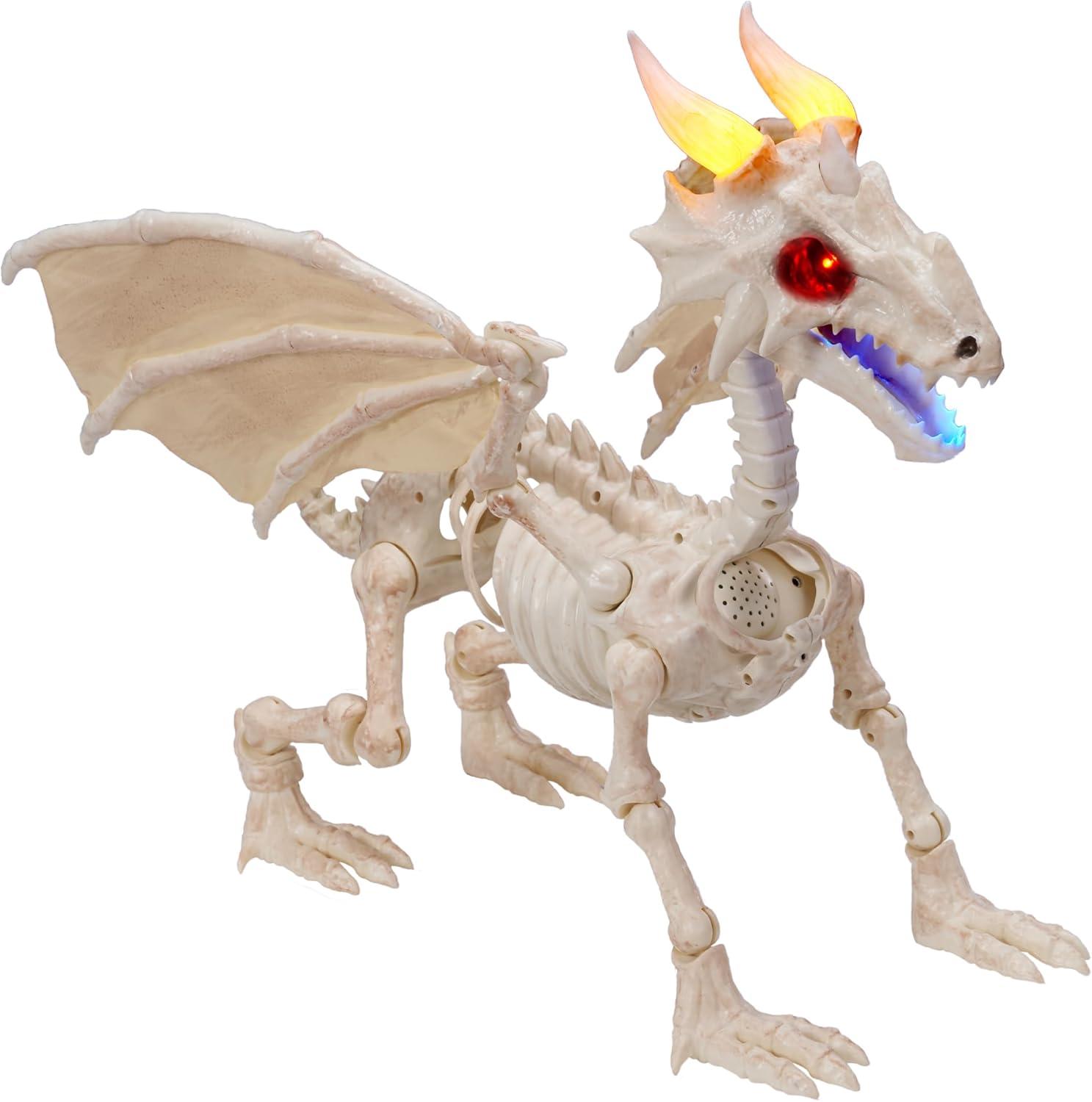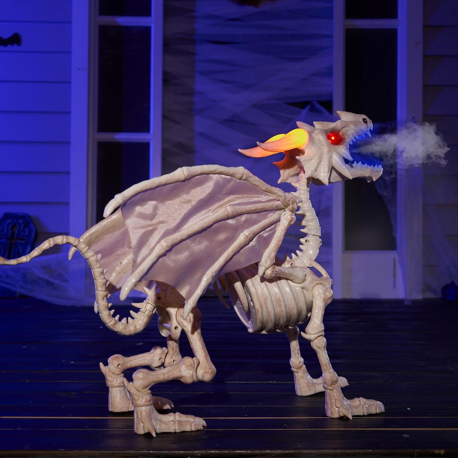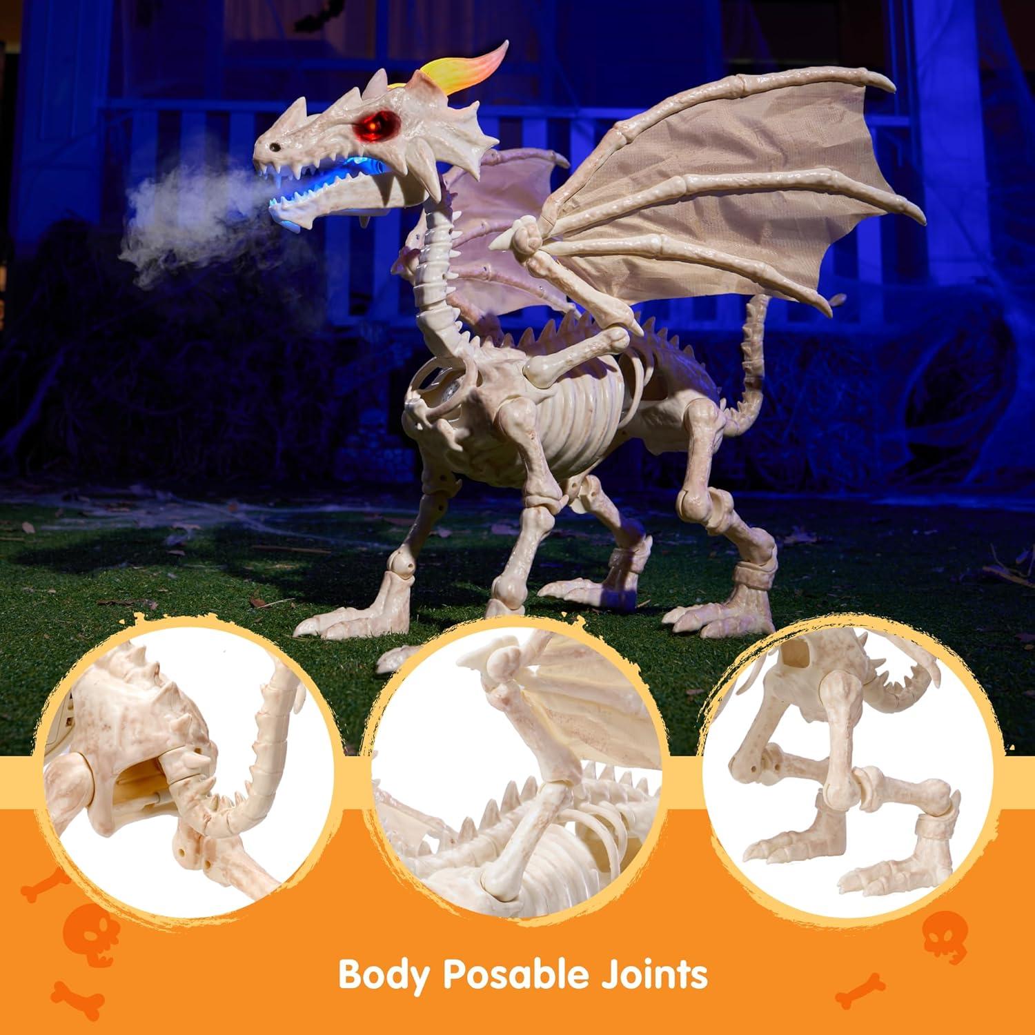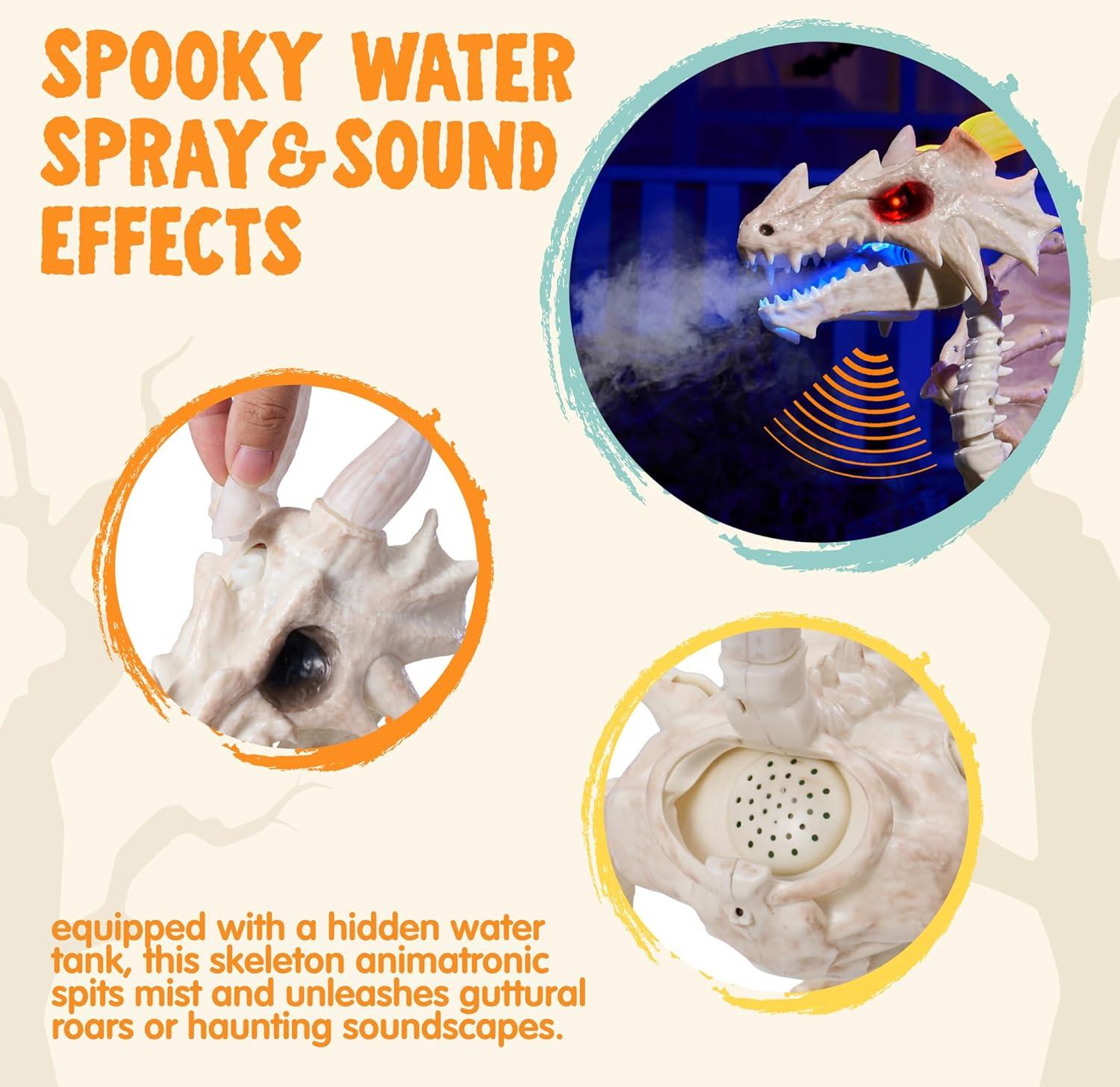Built-In LED Illumination: Glowing horns & red eyes pierce through the darkness, casting an eerie glow on the intricate animal skeletons-inspired design. With an eerie blue glow in its jaws, the dragon’s spray becomes a chilling spectacle!