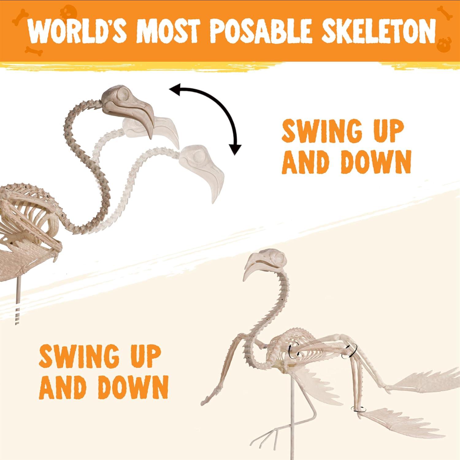 Movable Joints: Enhance your creativity with poseable limbs! Adjust the flamingo skeleton's neck,wings to create dynamic scenes—whether it’s crawling through bushes or “strutting” across your lawn. Perfect for interactive “animals skeleton” displays that evolve with your spooky vision.