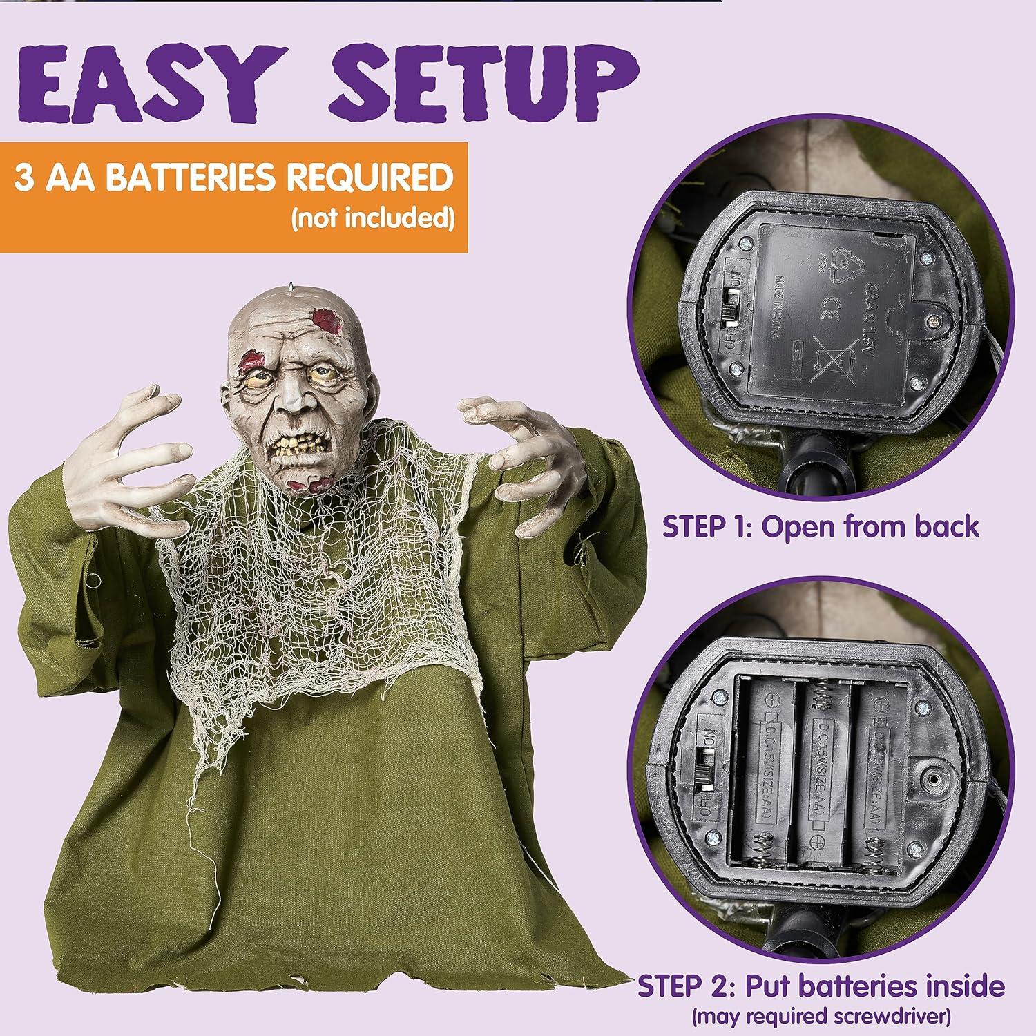 REALISTIC HALLOWEEN DECOR: Our 23.6 inches Animated Zombie Groundbreaker is the perfect Halloween decoration for creating a realistic and spooky scene in your yard or indoor space.
