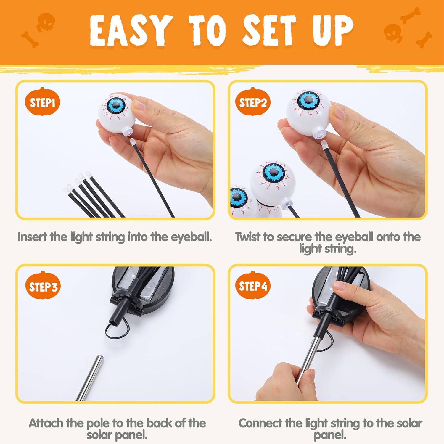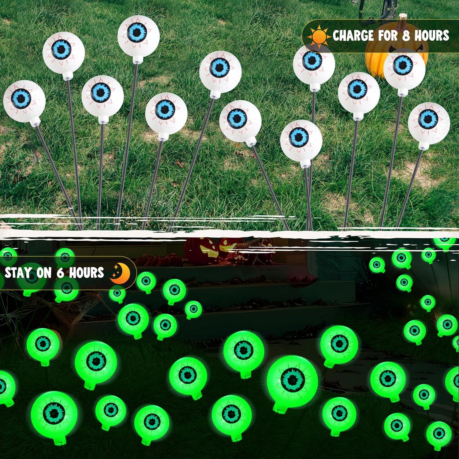 Versatile Scene: Perfect for halloween garden setups, porch displays, path, backyard, front yard or halloween yard decorations, these stakes adapt to any theme. Use them to frame haunted walkways, complement solar eyeball halloween lights outdoor displays, or add a spooky twist to halloween lights solar powered parties.