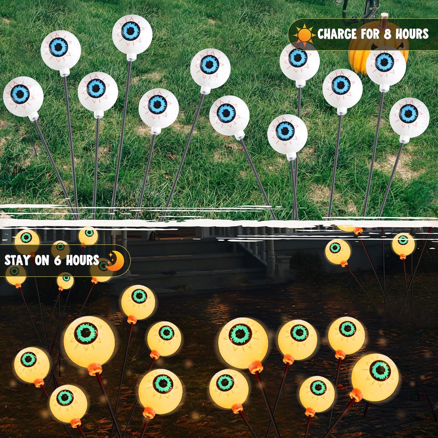 Versatile Scene: Perfect for halloween garden setups, porch displays, path, backyard, front yard or halloween yard decorations, these stakes adapt to any theme. Use them to frame haunted walkways, complement solar eyeball halloween lights outdoor displays, or add a spooky twist to halloween lights solar powered parties.