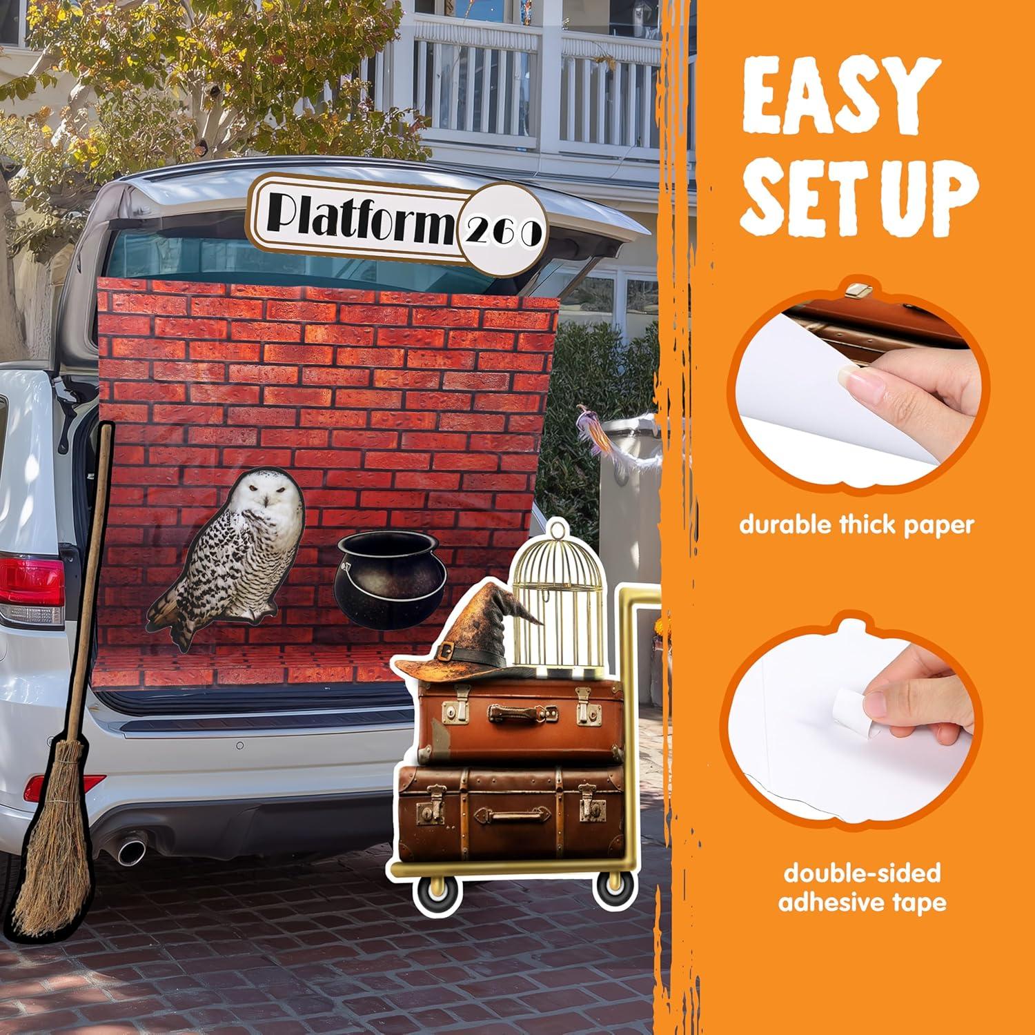 Durable & Damage-Free:Made from lightweight cardboard and paired with traceless adhesive tape, these decorations cling securely to any vehicle surface. No residue, no fuss—just magical trunk-or-treat car decorations that vanish cleanly post-Halloween!