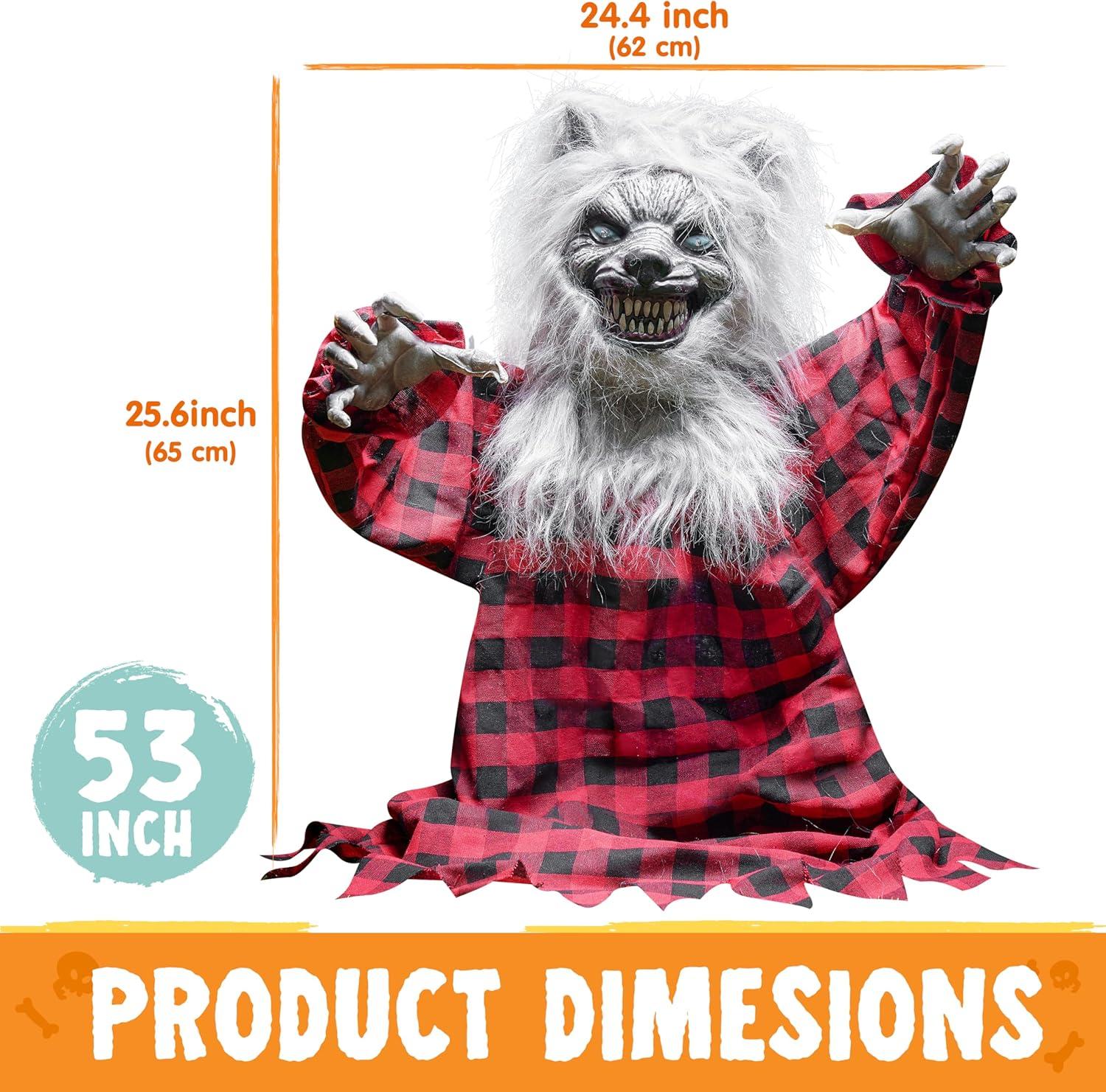Premium Quality: Crafted from durable materials, our Animated Werewolf Groundbreaker is built to withstand the frights of the season, ensuring it remains a centerpiece of your Halloween decor year after year.Prepare to be spooked by the lifelike appearance of our Animatronic Werewolf Groundbreaker!