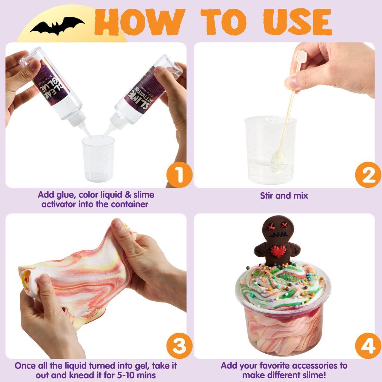 HAPPY SLIME-MAKING! Get your hands slimy and let your imagination run wild with our slime kits for boys and girls. Unleash the DIY spirit and create a hauntingly fun atmosphere of spooky Halloween magic!