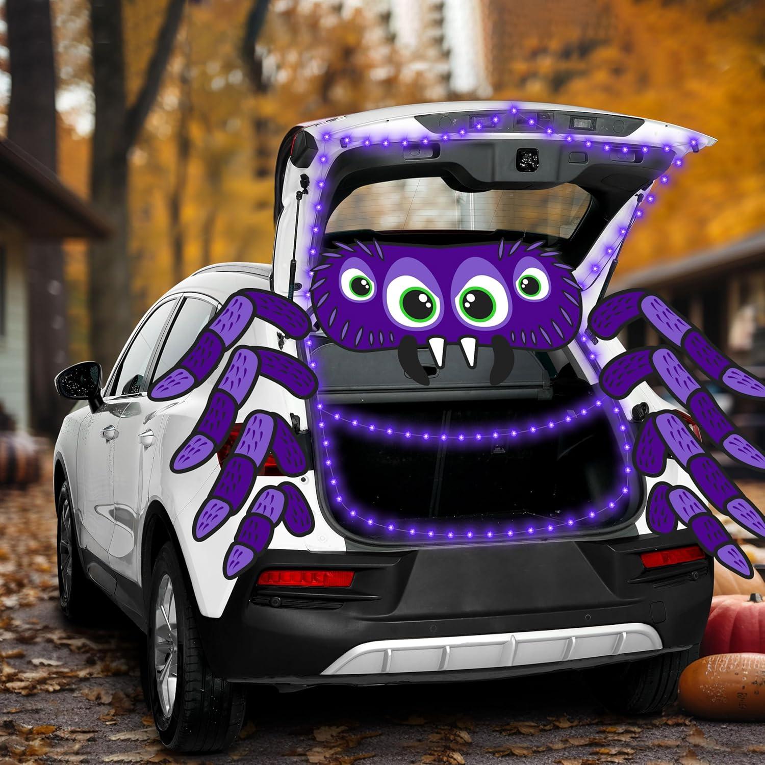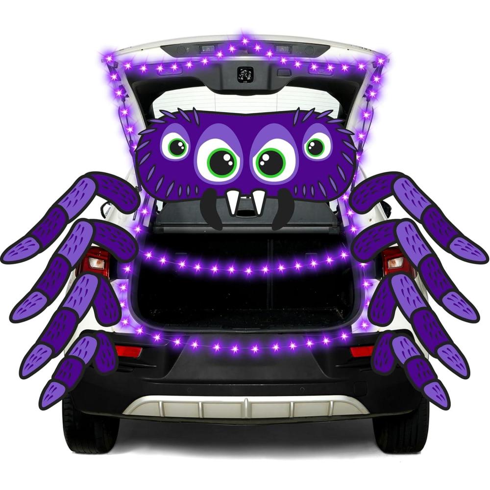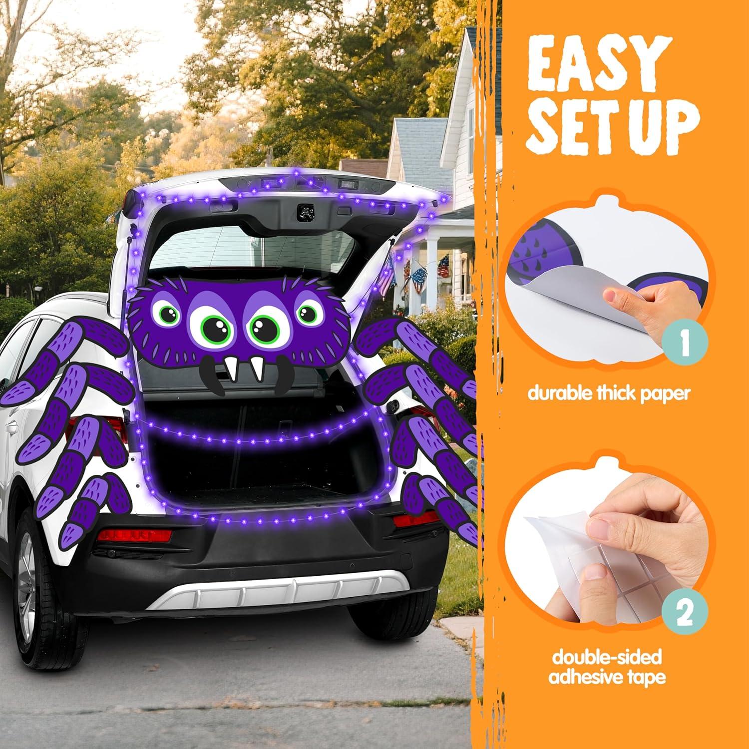 Easy to Use: Assemble in minutes! Pre-designed cardboard spiders and adhesive hooks let you decorate trunks, windows, or garage decor without tools. Even kids can help create the spooky setup!