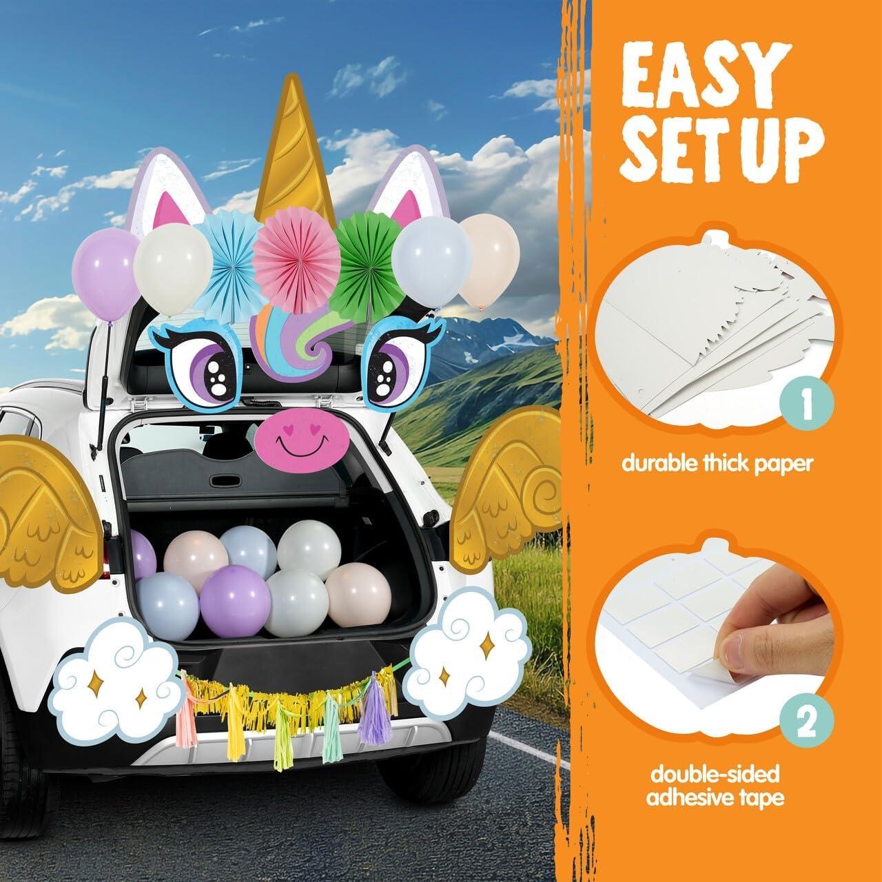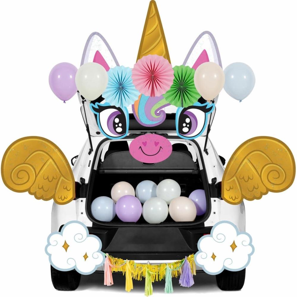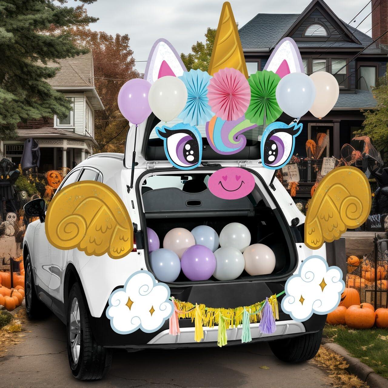 Unique Design: Unicorns represent purity, elegance, beauty, and divinity, and almost every person loves them. Our unicorn party decoration set is full of unicorn elements. Stand out from the crowd with this unique unicorn-themed trunk or treat decoration with assorted classic and cute Halloween characters. You can place it on the front of your open trunk or car, and use it outdoors to create a spooky but fun atmosphere.