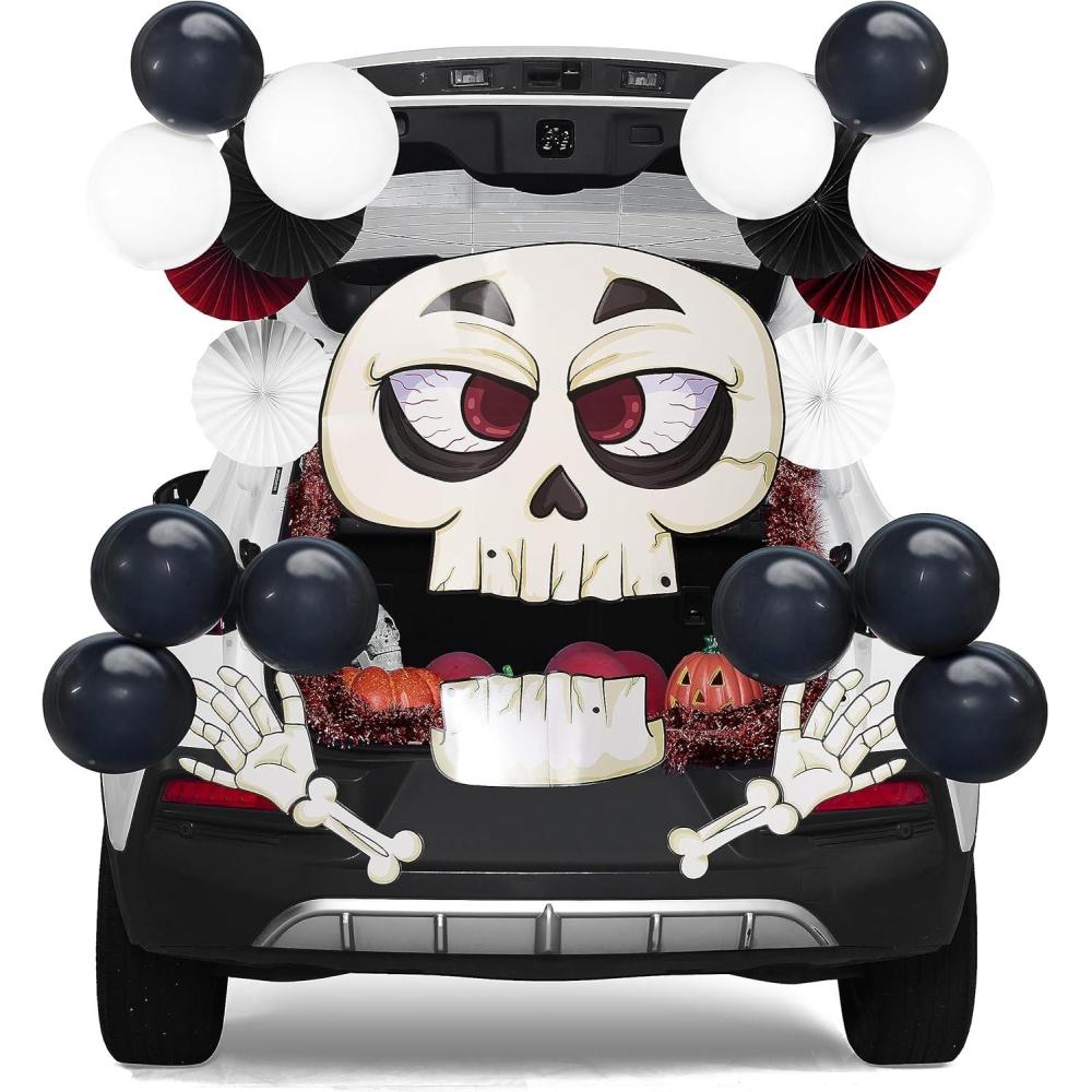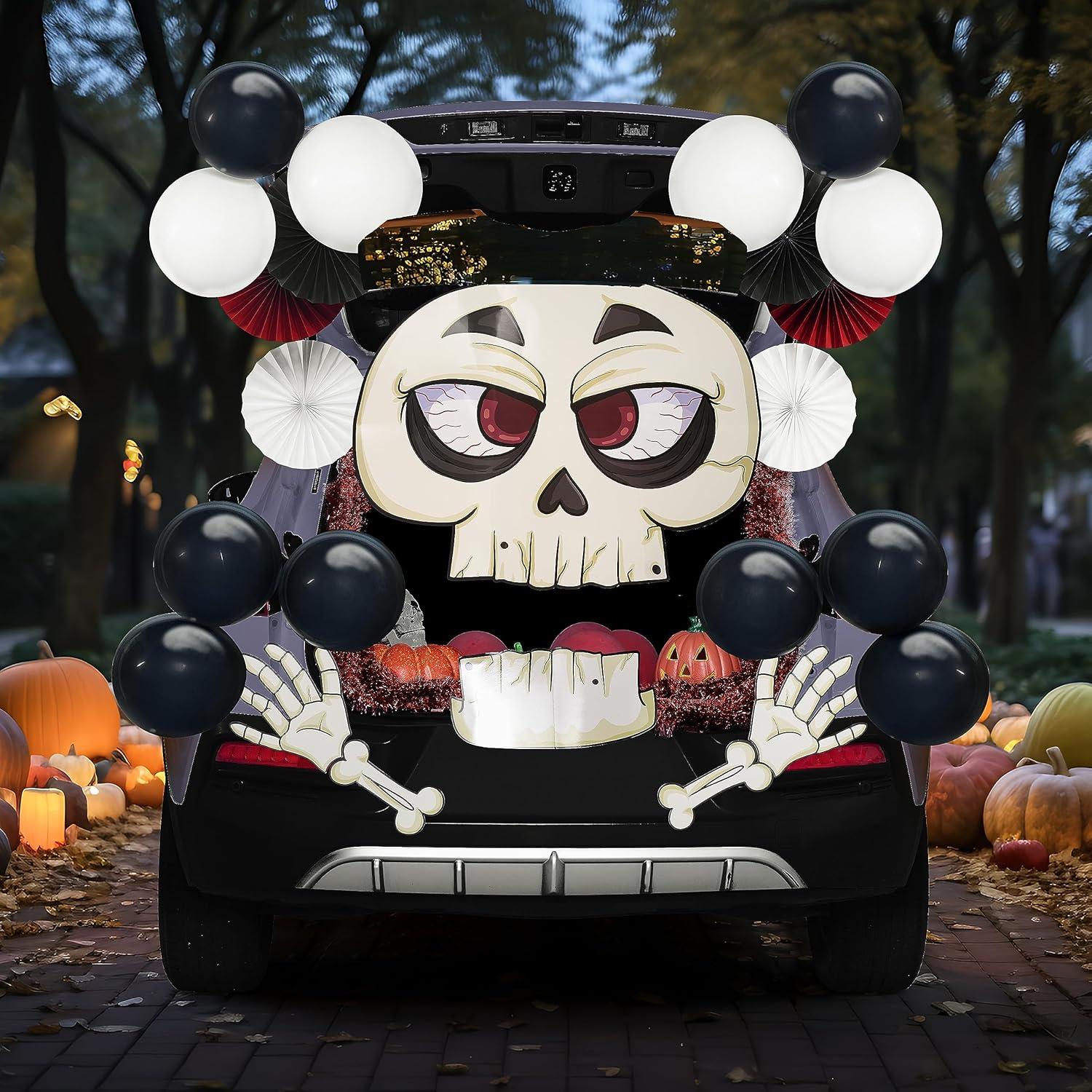 UNIQUE DESIGN: Stand out from the crowd with this unique Halloween trunk or treat decoration with a Spooky Skeleton design. You can place it on the front of your open trunk, or the front of your car, or even use it indoors to create a spooky but fun atmosphere.