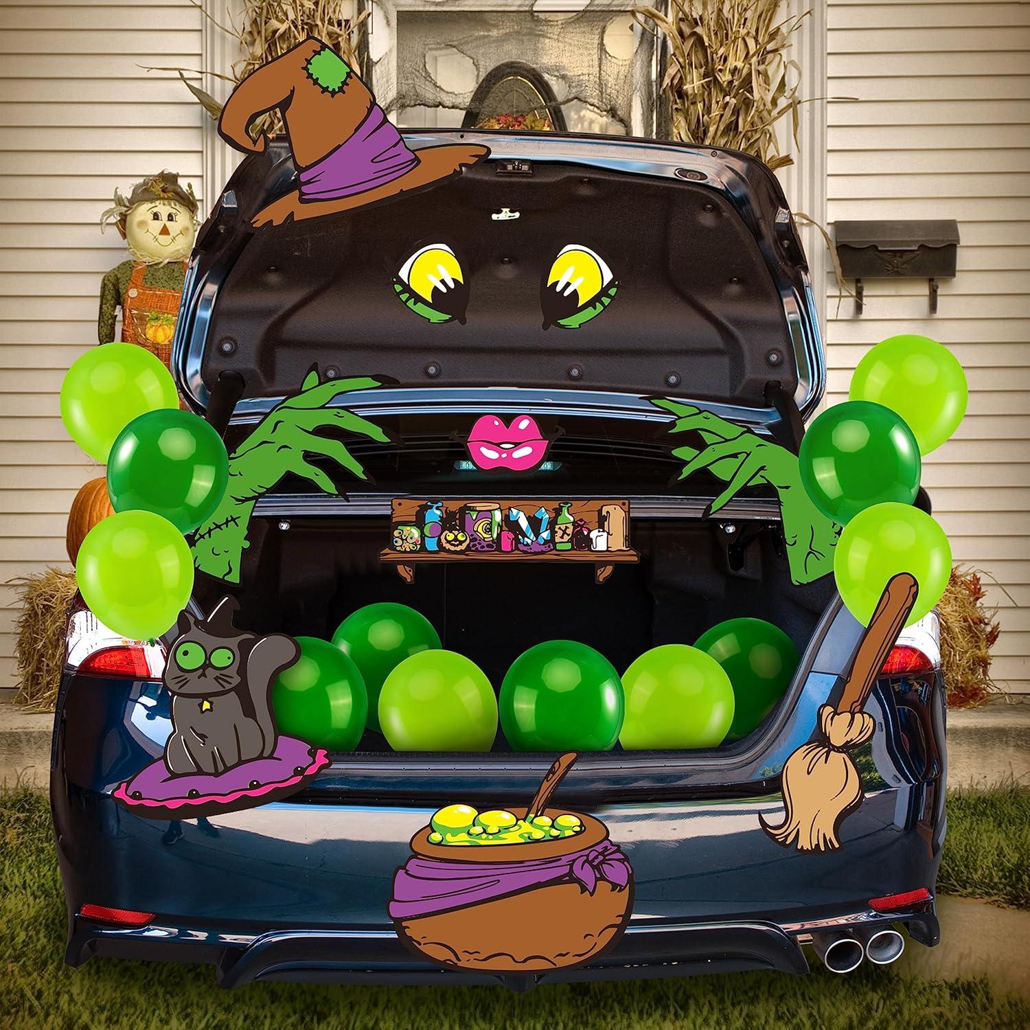 UNIQUE DESIGN: Set the mood for a bewitching Halloween night with our trunk and treat decorations. Whether you want to draw the trick or treaters to your ghastly fun car or send them running in fright, this premium and distinct decoration should do just the trick. These Halloween outdoor decorations are easy to attach to your vehicle trunk and can withstand various weather conditions.