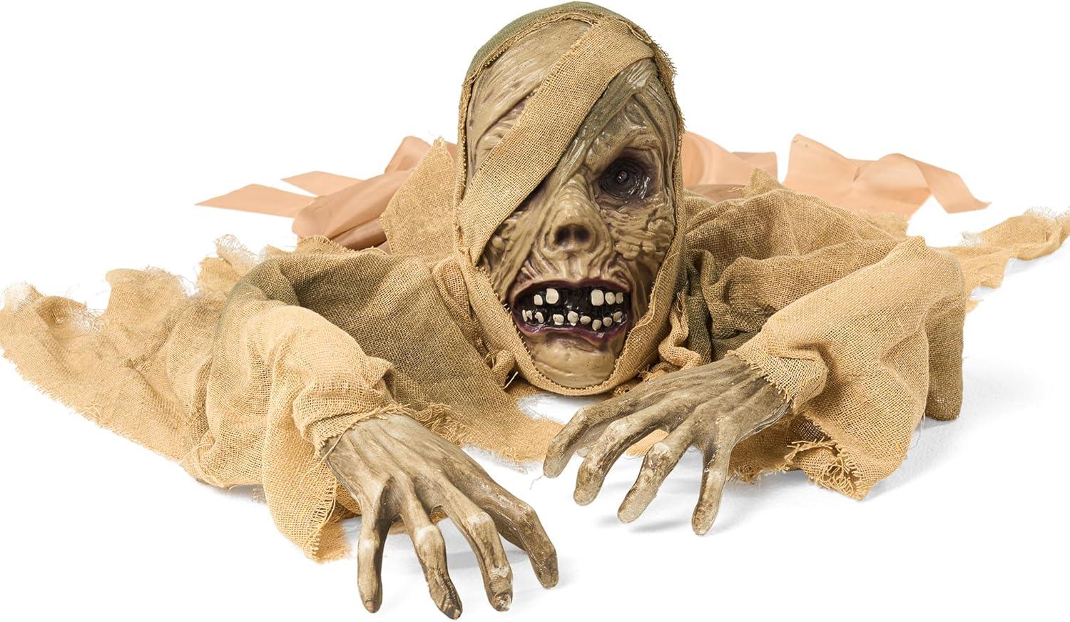 Creepy Halloween decor: our zombie groundbreaker is a great spooky Halloween prop for haunted graveyard theme, its face with bandage looks realistic and horrible, appears to be crawling out of the ground in your yard