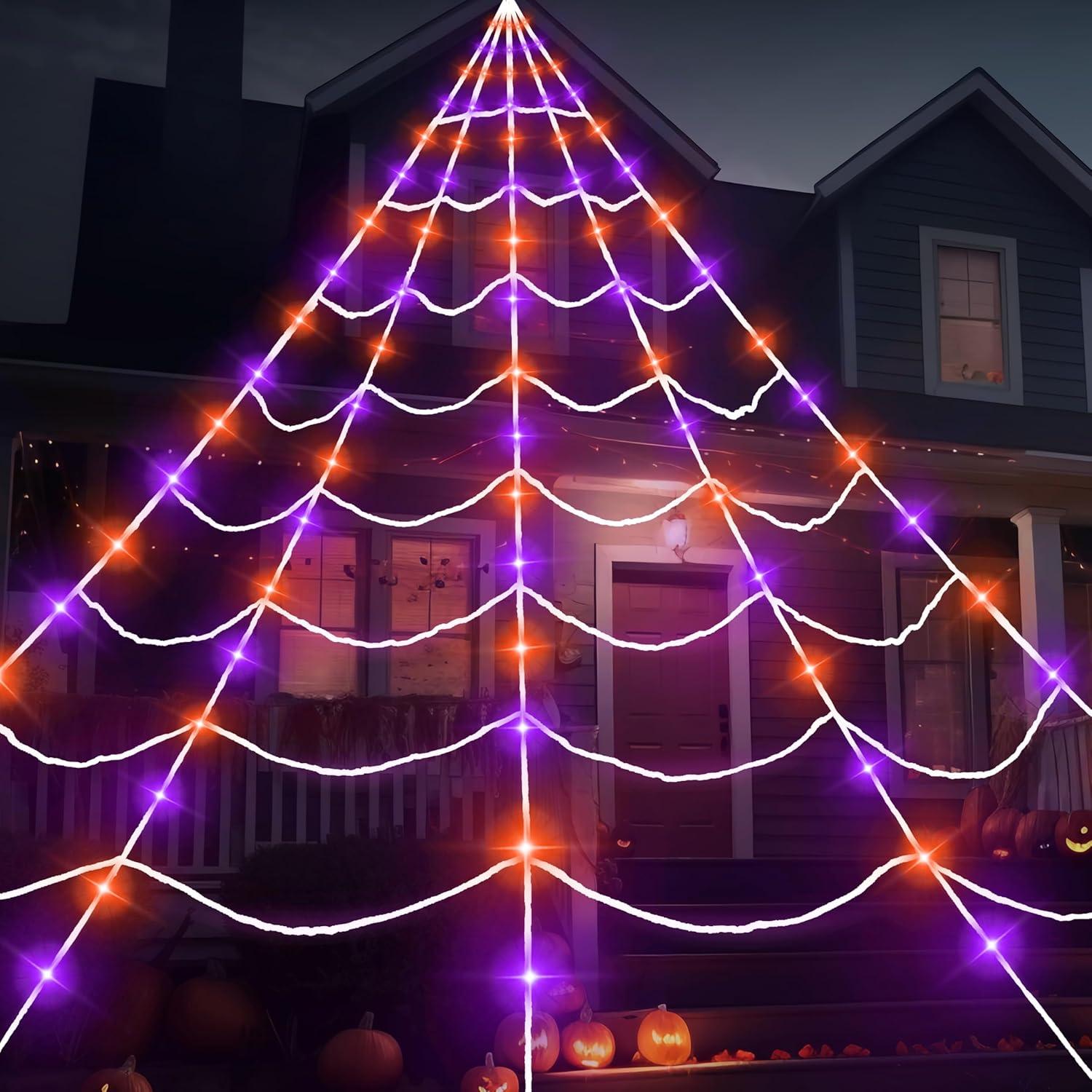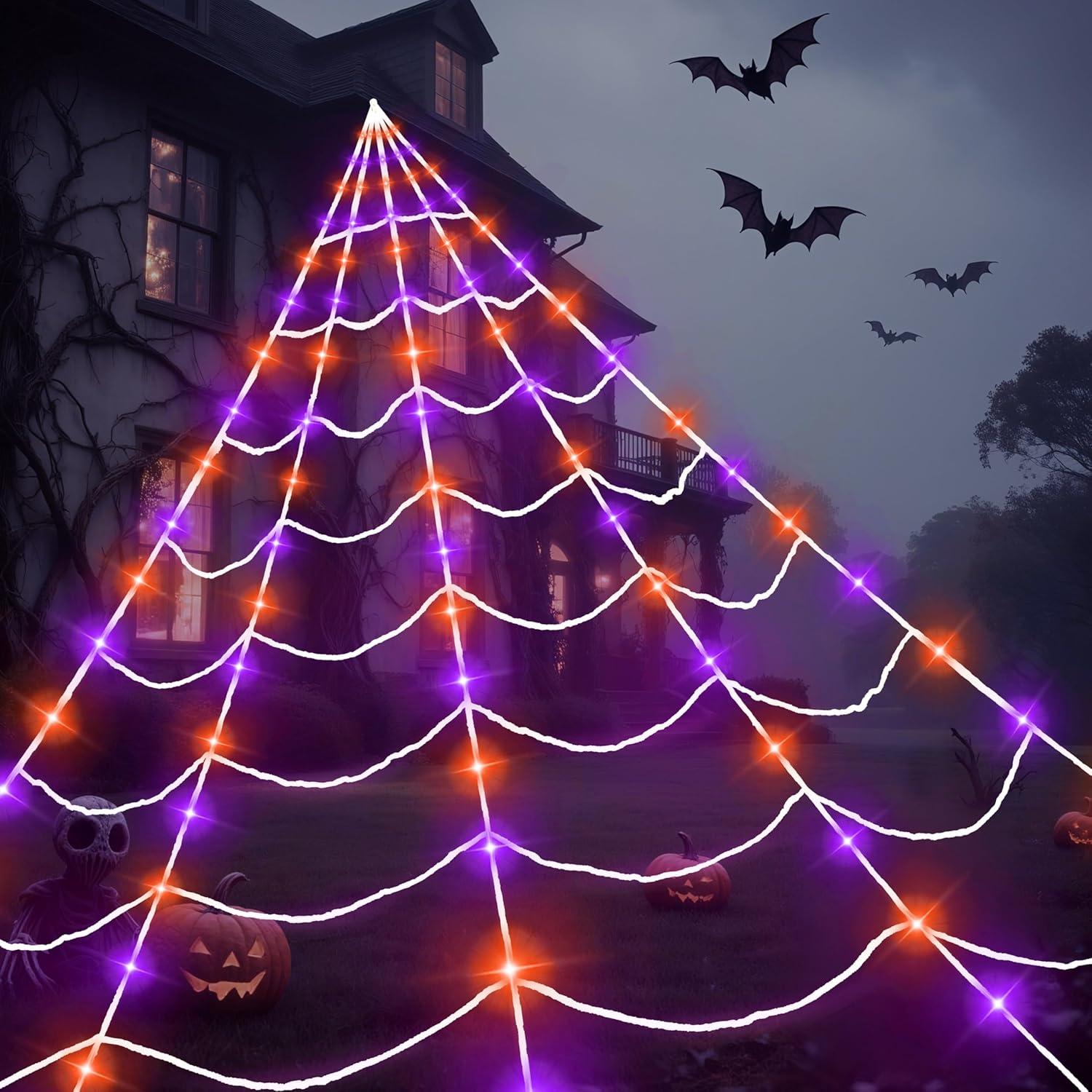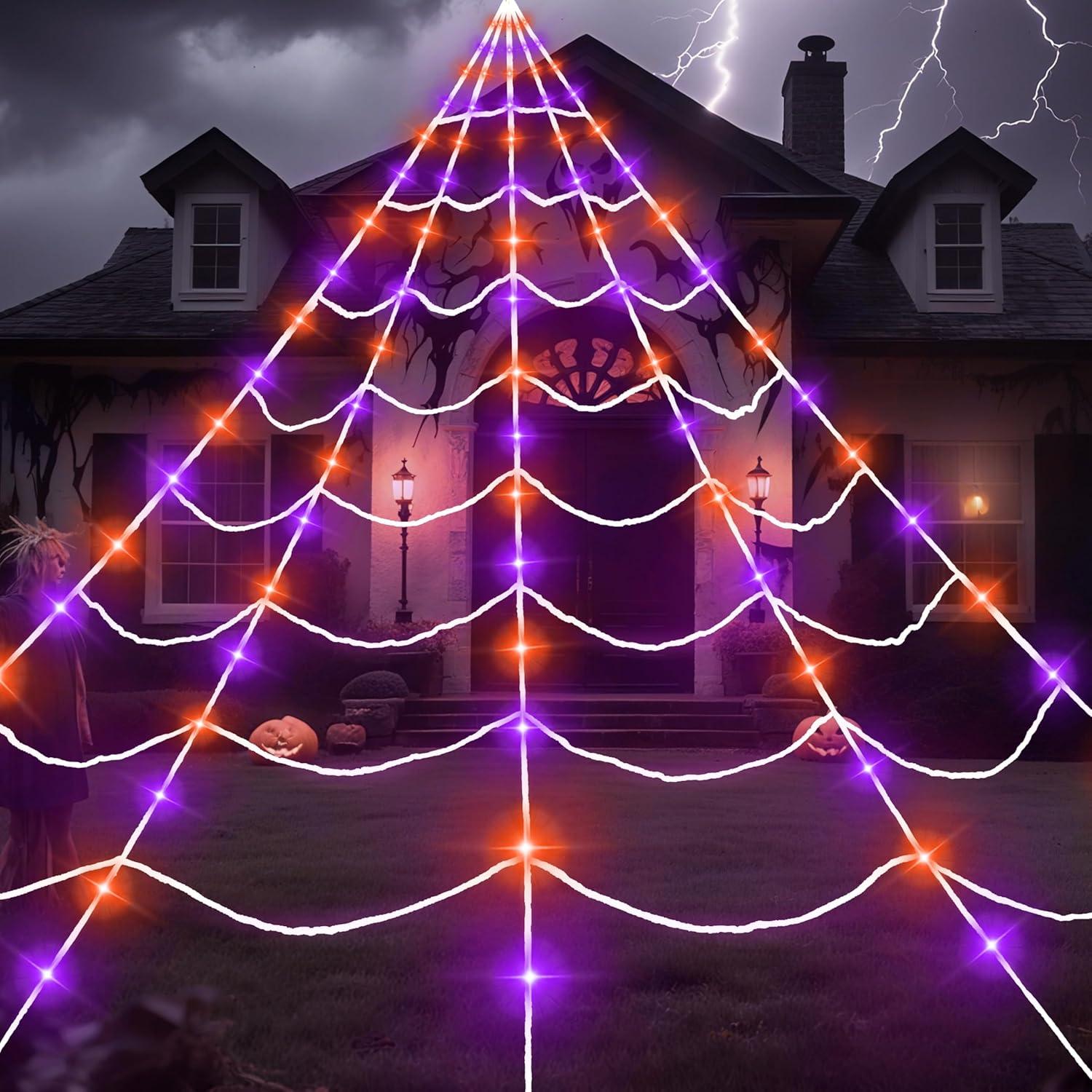 Spooky Design: The LEDs cast an eerie purple-orange glow, perfect for illuminating fake spiders clinging to the web. Pair with skeletons or big spider Halloween decor for a full haunted scene!