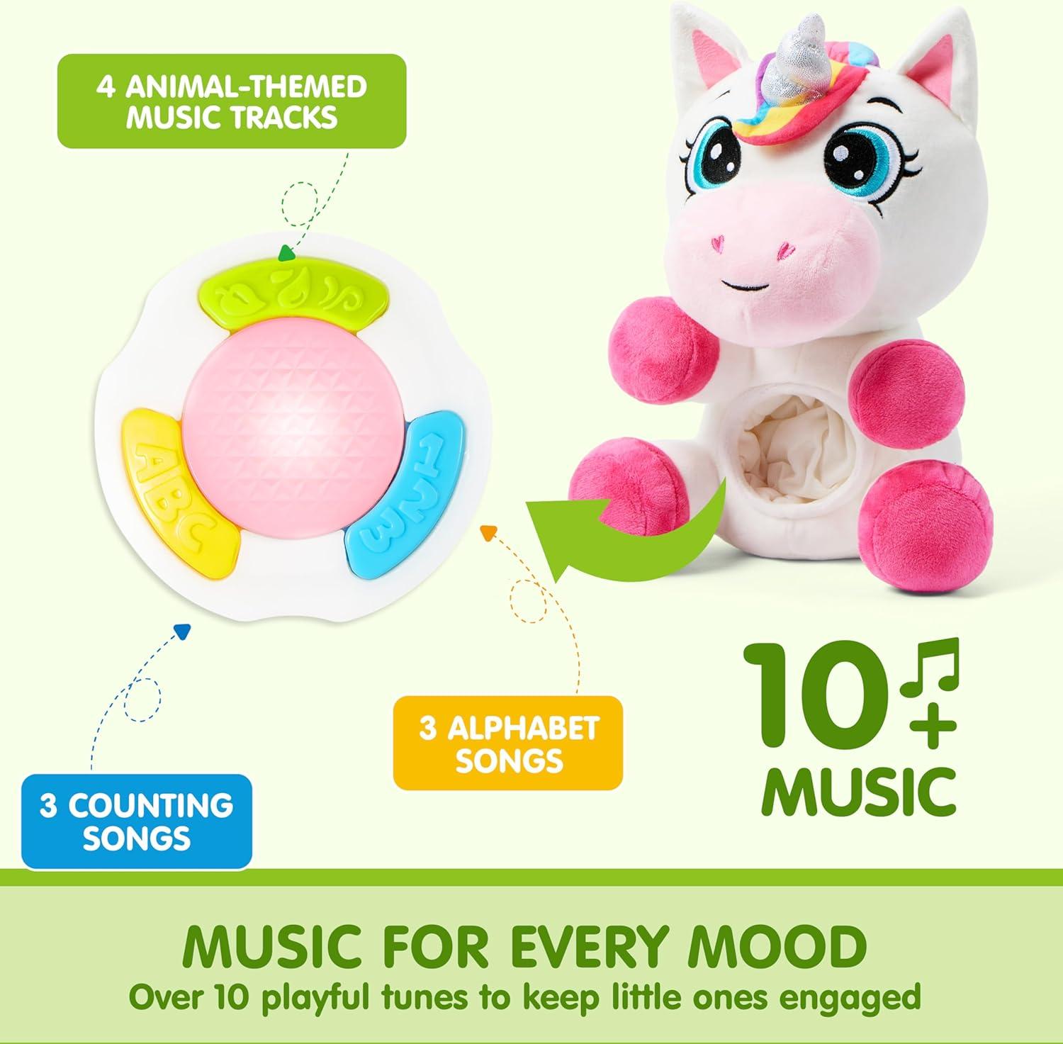 Gentle Light Interaction: Colorful, low-frequency flashing lights capture your little one's attention without harming their eyes, making this unicorn plush a perfect companion for quiet play period