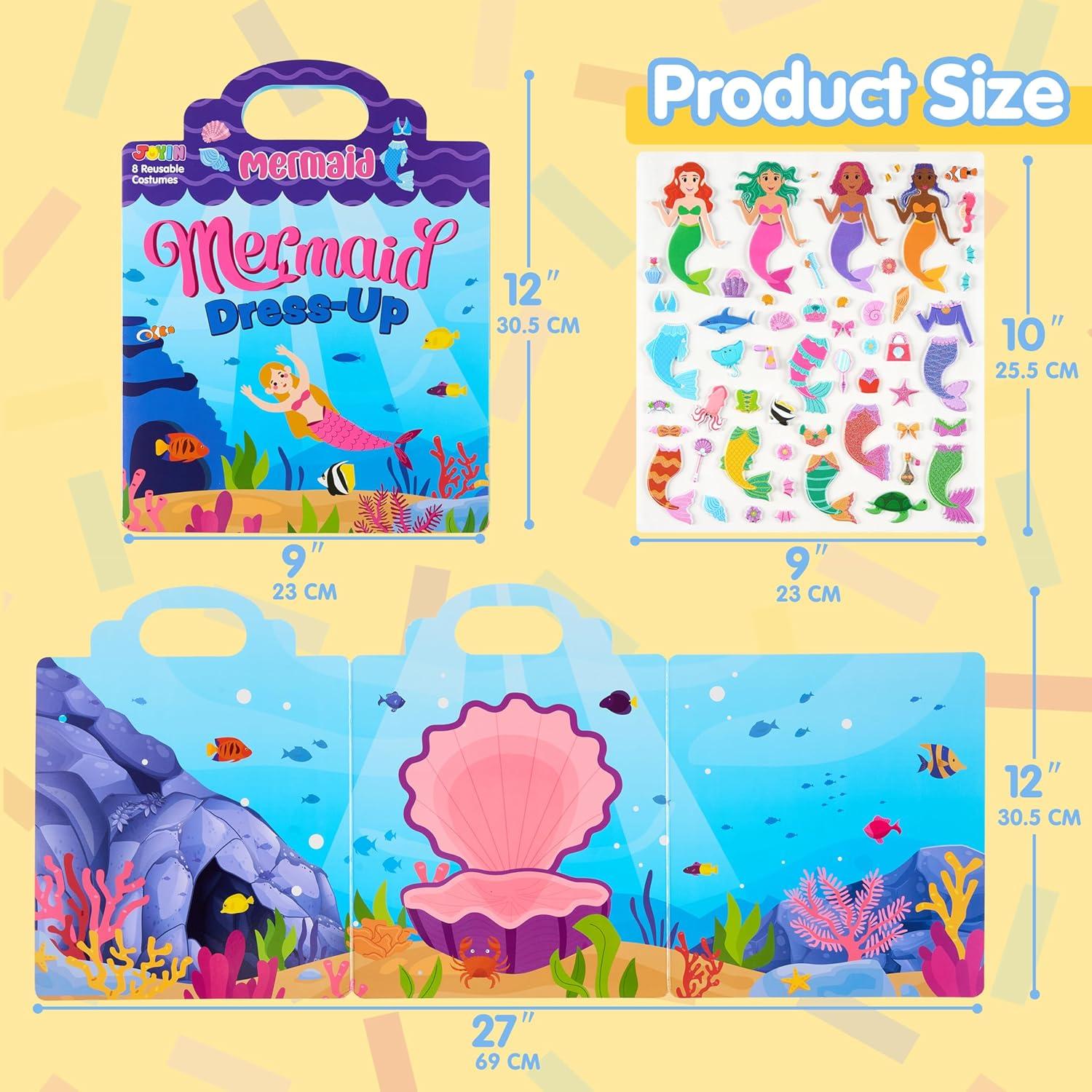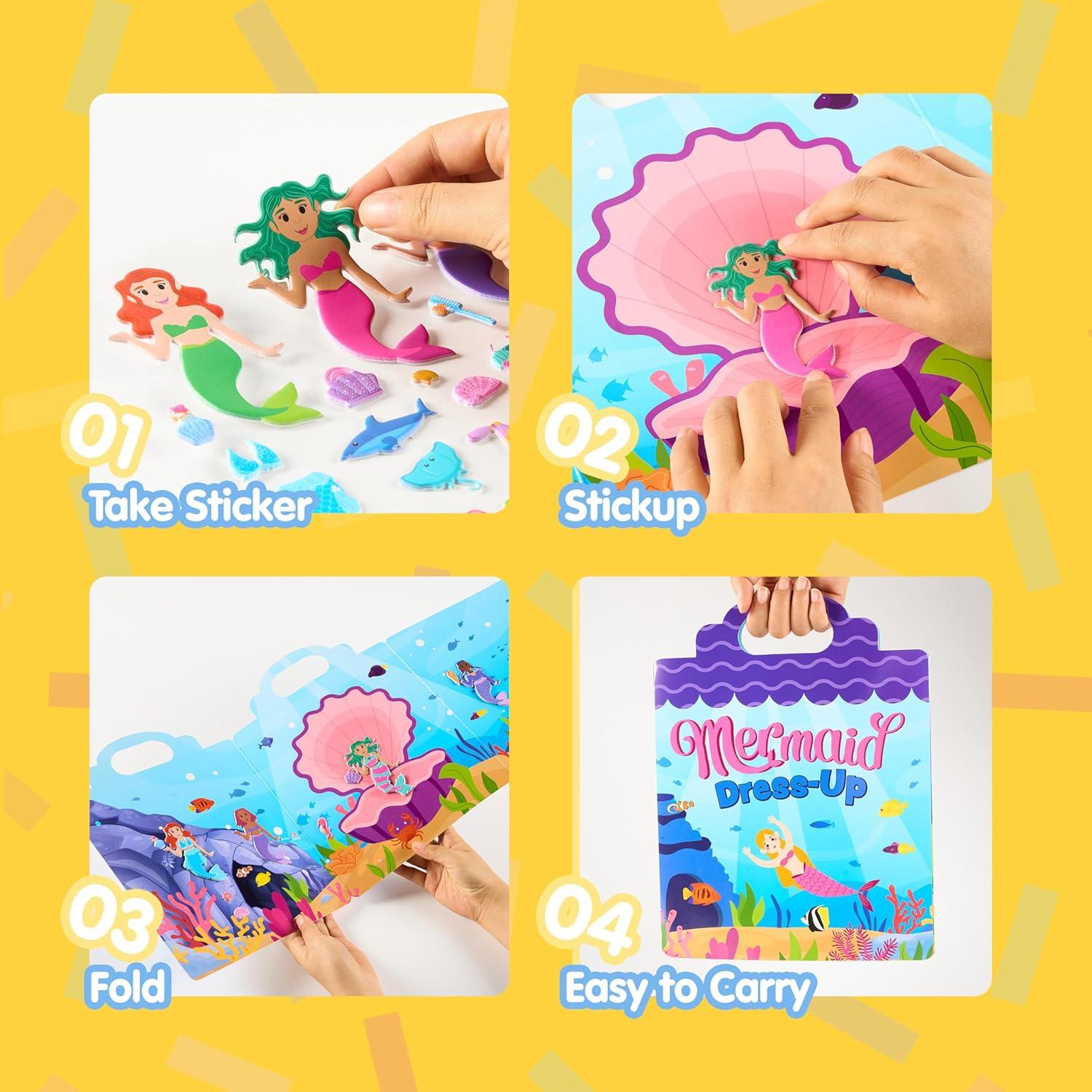 JOYIN Ocean Animals Reusable Sticker Book for Toddlers, 3D Sticker Books for Kids 3 4 5, Travel Essentials, Airplane Activity Toys, Crafts Gifts, Birthday Gifts(Mermaid)