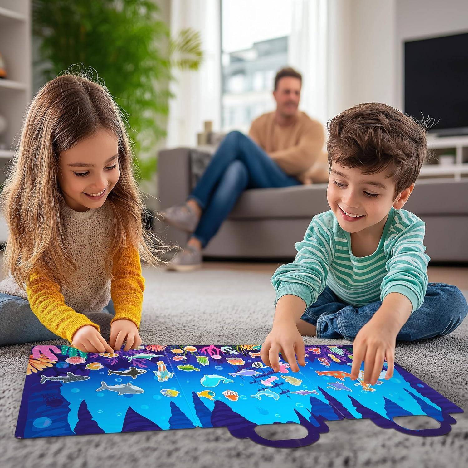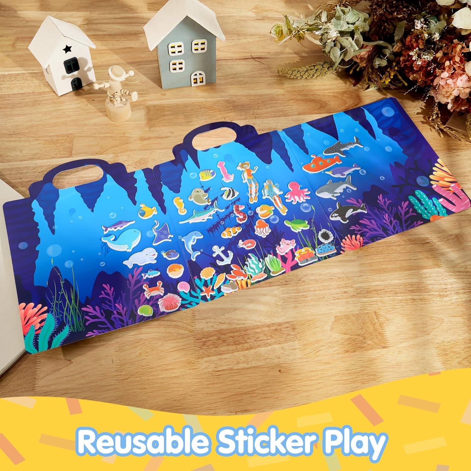 JOYIN Ocean Animals Reusable Sticker Book for Toddlers, 3D Sticker Books for Kids 3 4 5, Travel Essentials, Airplane Activity Toys, Crafts Gifts, Birthday Gifts(Ocean)