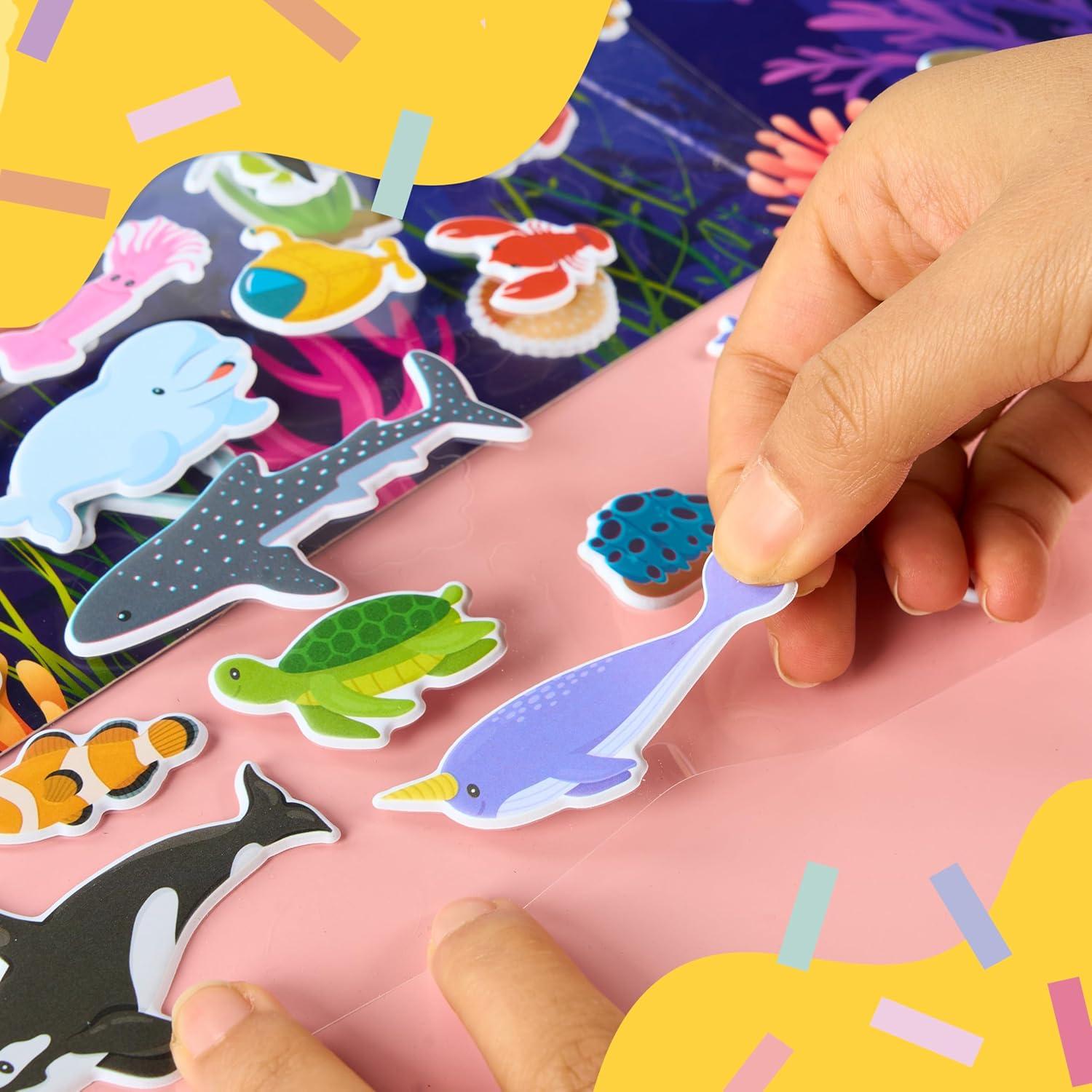 SUPER VALUE: Ocean themes right at your fingertips for little explorers. This reusable activity book comes with 45 animal stickers to mix, match, and create endless Adventures
